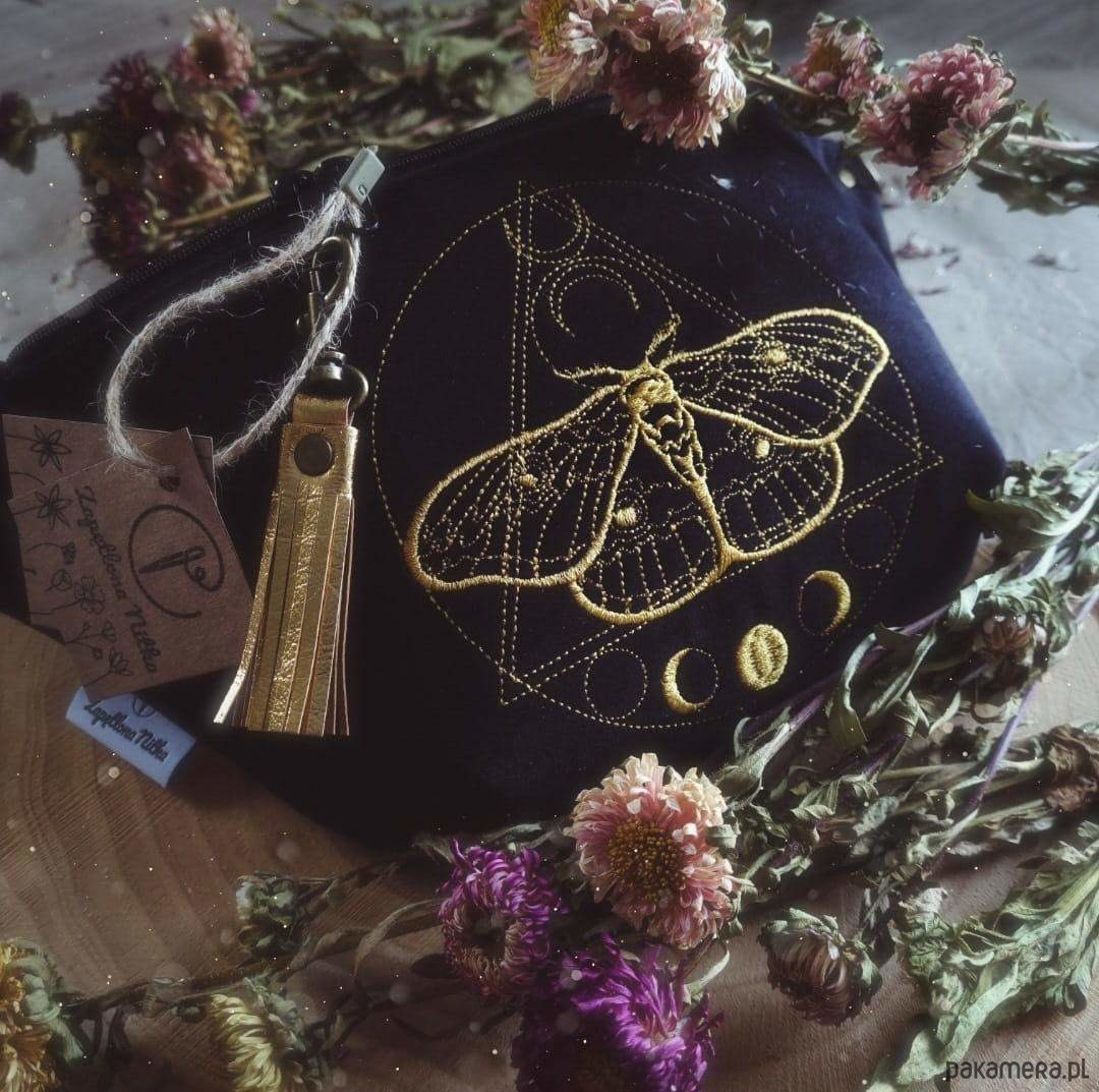 Nerka uszyta z czarnego eko zamszyku (przód nerki), eko skóry czarnej (tył i klapa nerki) oraz poliestru wodoodpornego (podszewka). Tył nerki wykonany z eko skórki, tkanina jest śliska, dzięki czemu nerka nie czepi się naszego ubrania. Regulowany pasek nośny z możliwością wymiany (nerka posiada po bokach 2 metalowe półkola, które umożliwiają szybkie zapinanie/ wymianę paska np. na inny kolor). Wymiary: 32cmx18cmx7cm(klapa) .W środku kieszonka w formie przegródki na tylnej ściance. Obwód paska wraz z nerką ma wymiary: minimum 95cm obwód, max 140cm obwód (jeśli interesuje Cię inny obwód lub inny kolor paska napisz do mnie wiadomość). Na przodzie haft komputerowy. W komplecie do nerki pasek widoczny na zdjęciach.