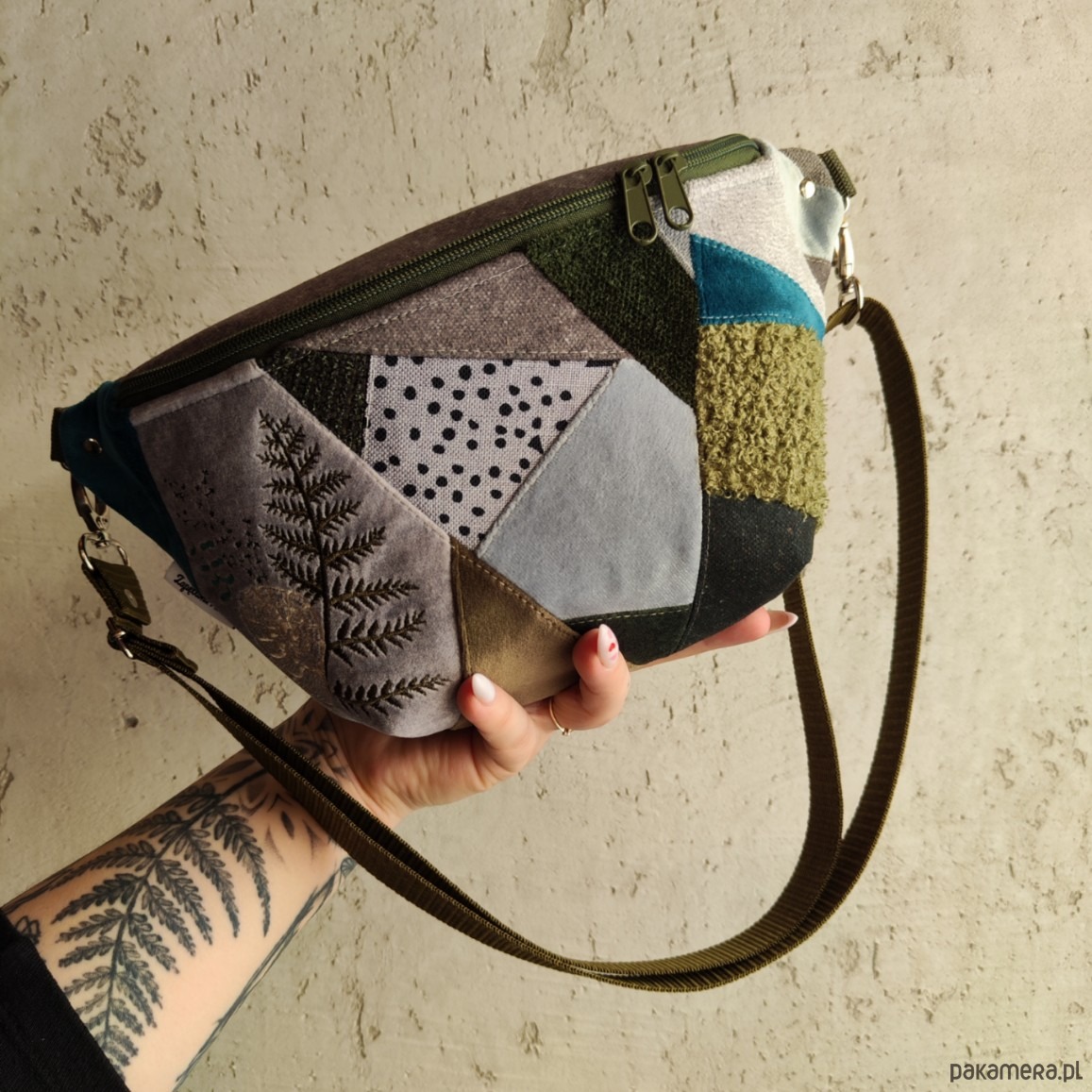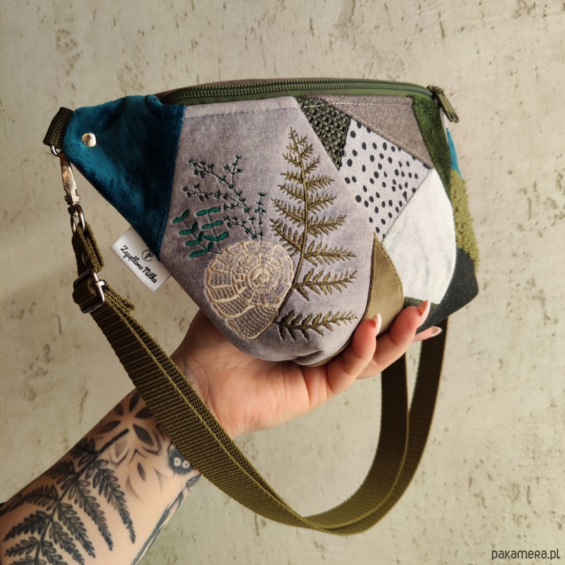 Nerka XXL unikat, tylko jedna sztuka! Nerka stworzona z końcówek tkanin żeby nie marnować, zero waste patchwork. Wymiary nerki 32cmx17cmx7cm(klapa). Wewnątrz wszyta beżowa gruba podszewka, wewnątrz nerki również znajduje się kieszonka przegródka. W komplecie do nerki regulowany pasek szeroki na 2,5 cm. Na przodzie nerki po boku haft;)