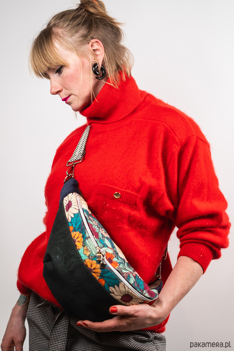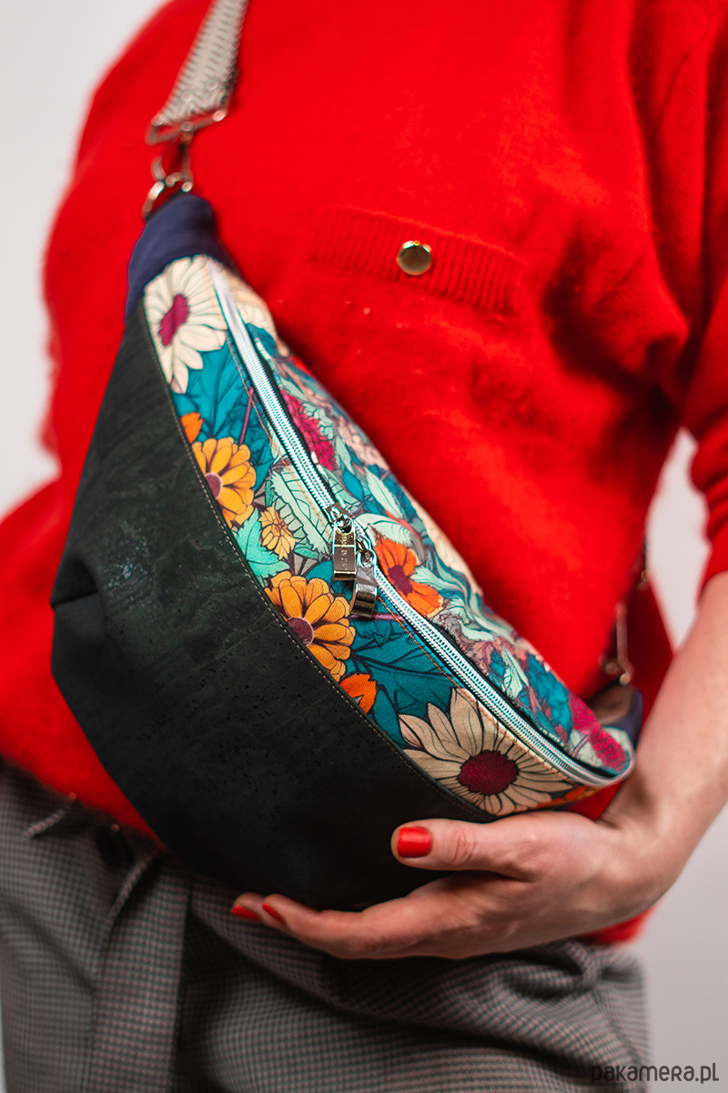 Nerka XXL to nie tylko praktyczne, ale i stylowe rozwiązanie. Wykonana z wysokiej jakości tkanin tapicerskich, z przodu ozdobiona uroczym kwiecistym wzorem z gabardyny. Nerka posiada kieszonkę na suwak w środku w podszewce, która pomieści telefon. Nerka sprzedawana jest z wygodnym, designerskim, szerokim pasem z regulacją.