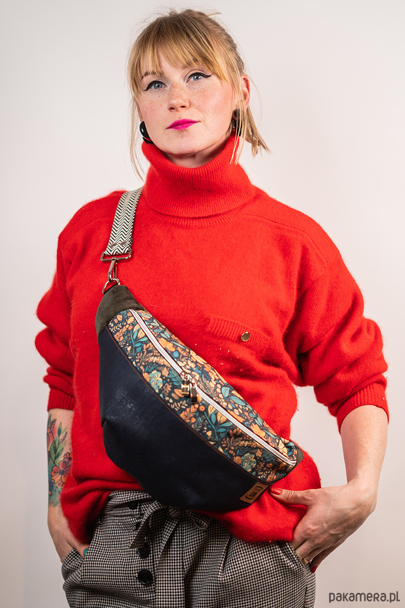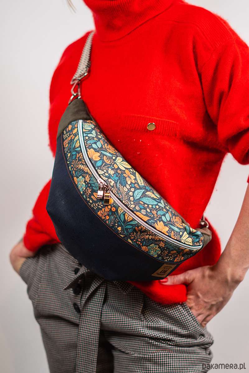 Nerka XXL to nie tylko praktyczne, ale i stylowe rozwiązanie. Wykonana z wysokiej jakości tkanin tapicerskich, z przodu ozdobiona uroczym kwiecistym wzorem z gabardyny. Nerka posiada kieszonkę na suwak w środku w podszewce, która pomieści telefon. Nerka sprzedawana jest z wygodnym, designerskim, szerokim pasem z regulacją.