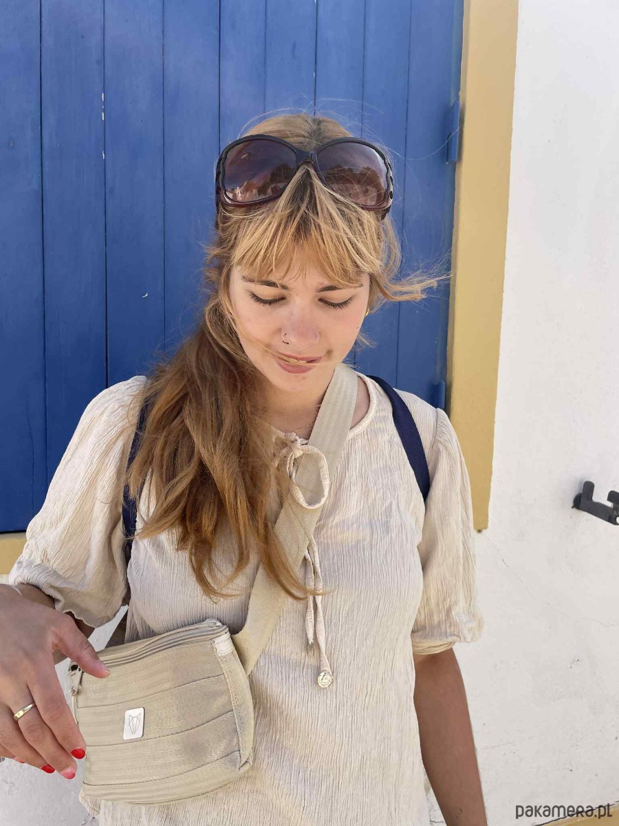 Zapinana na zamek, posiada regulowany pasek( max 120cm) - możesz nosić ją tak jak lubisz na pasie lub przez ramię. Wewnątrz kieszonka zapinana na suwak.