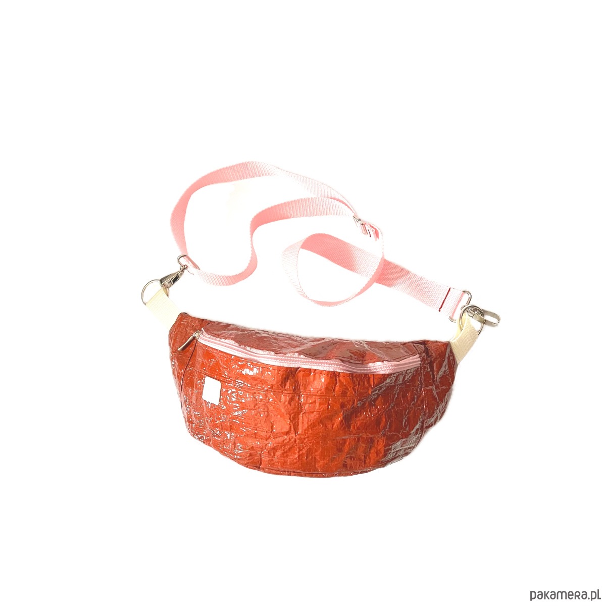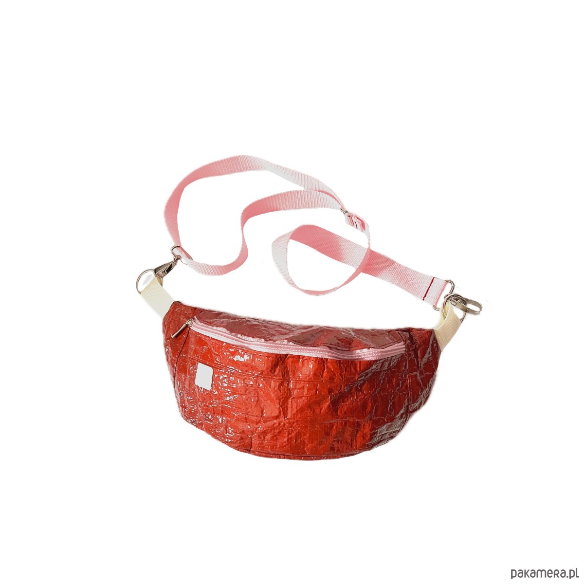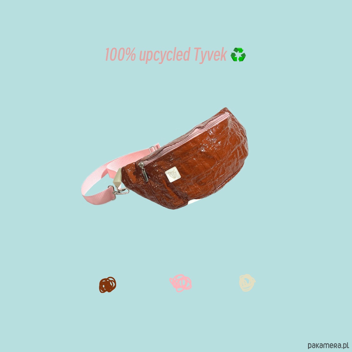 Upcyklingowa duża nerka, w całości wykonana z poddanych recyklingowi toreb na zakupy Tyvek – dając nowe życie wyrzuconym materiałom i zamieniając je w nowoczesną i ekologiczną torebkę.