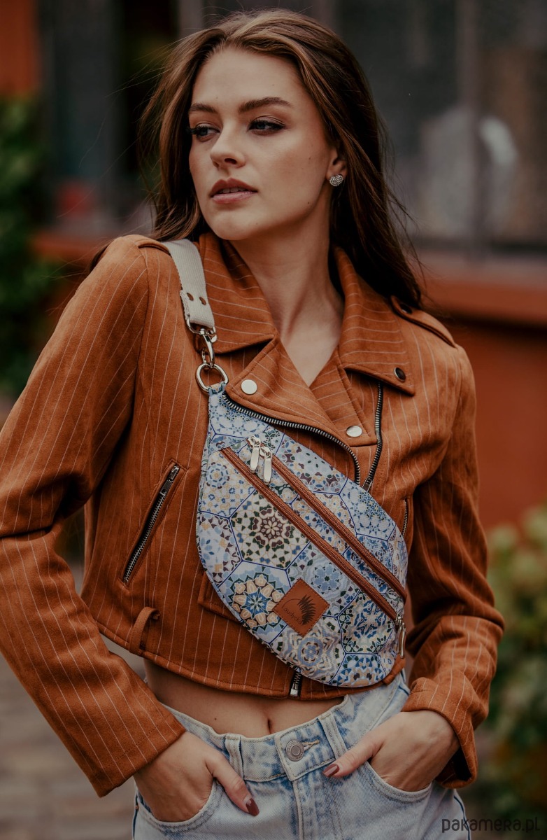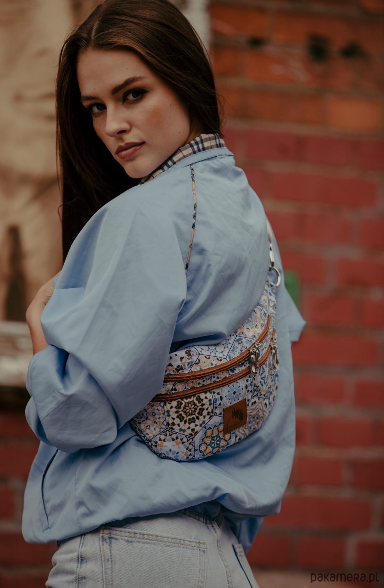 Całość zapinana na zamek. Wewnątrz na tylnej ściance dodatkowa kieszeń na zamek.