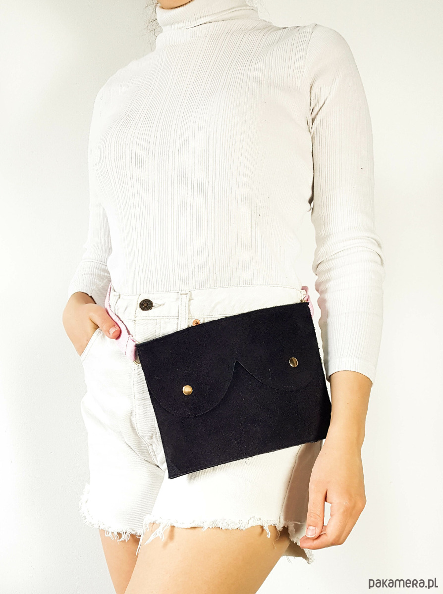 Wykonana ze skóry tapicerskiej z odpadów zakładu szyjącego tapicerki samochodowe. Jest to moje rozwiązanie na tworzenie ze skóry naturalnej, nie wspierając jednocześnie przemysłu garbarskiego.