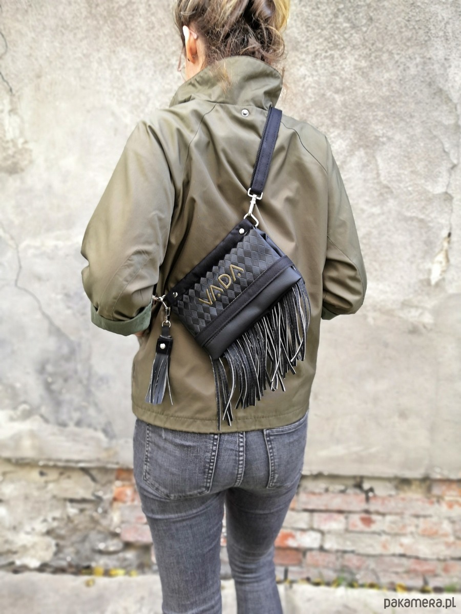 Saszetka, nerka, torebka JUNGLE KARBON frędzle