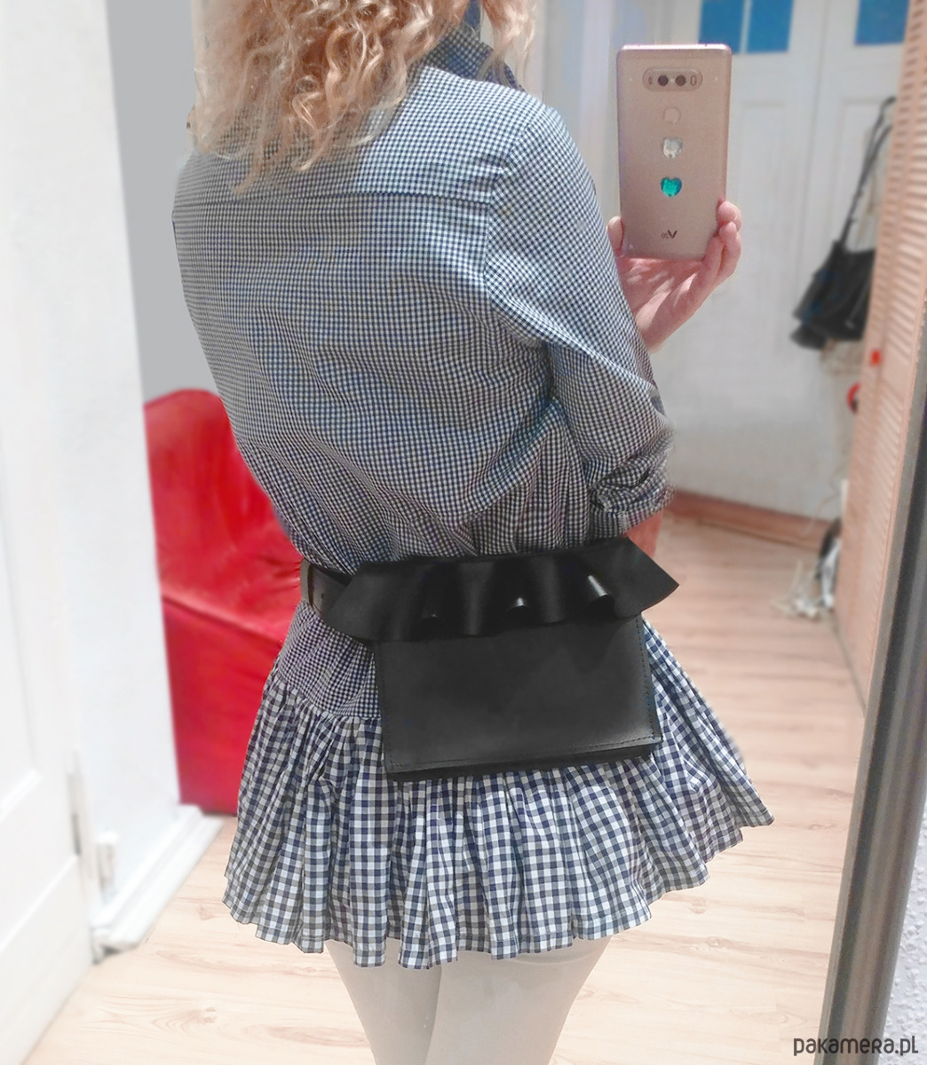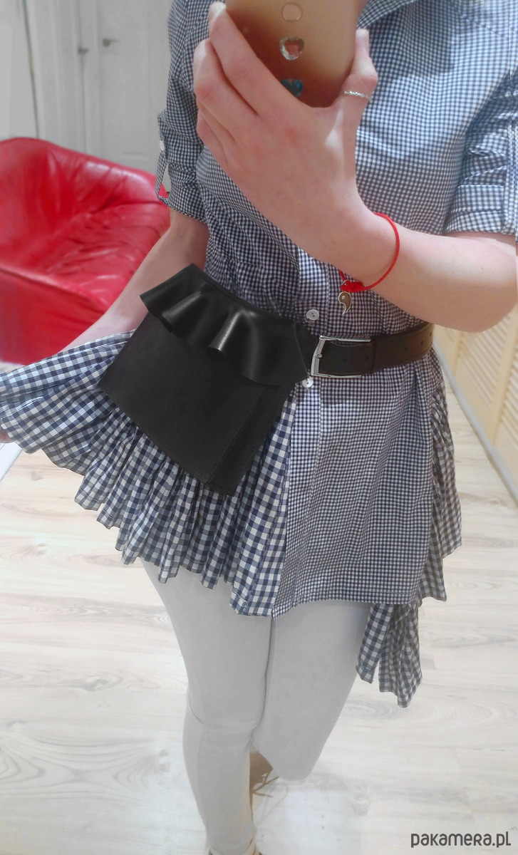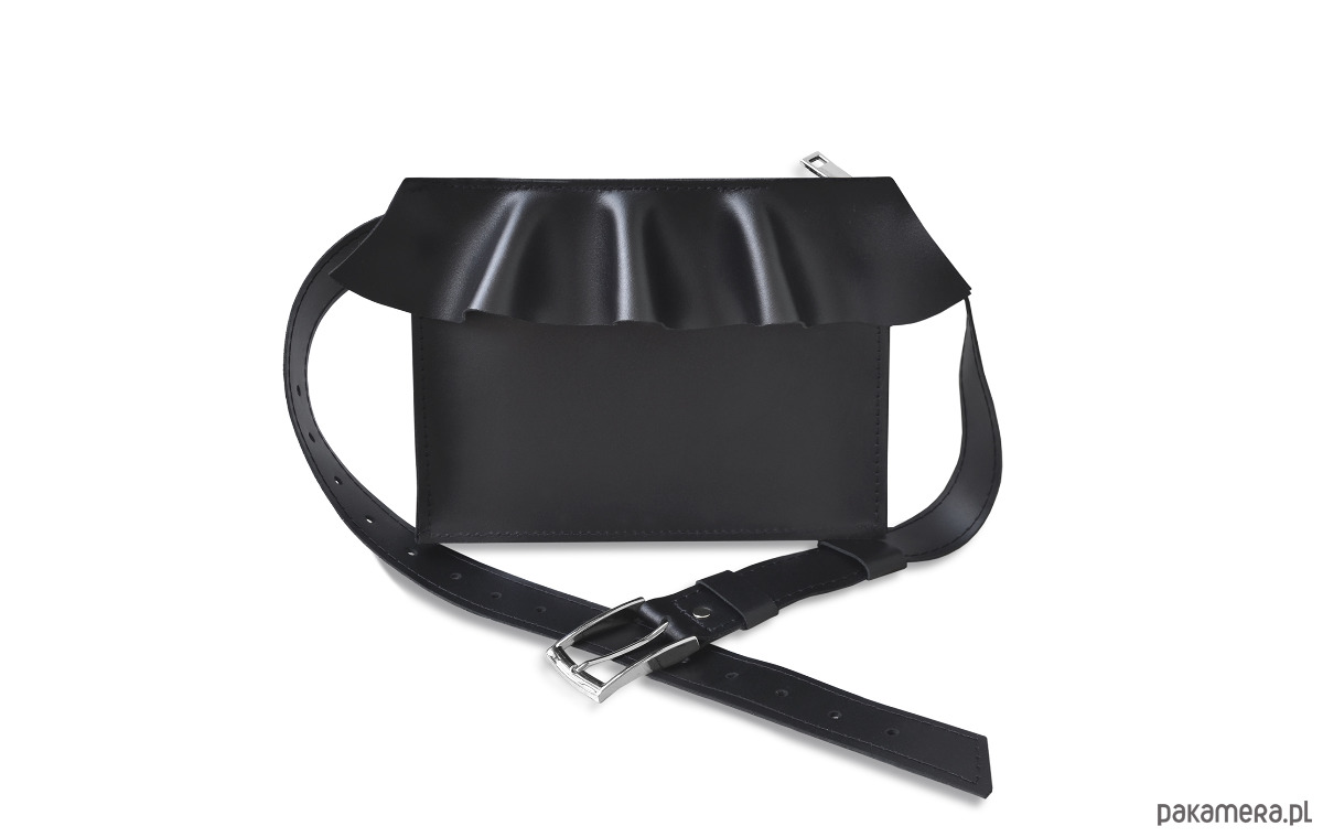 Torebka z falbanką na pas w całości wykonana z czarnej skóry naturalnej- licowej.