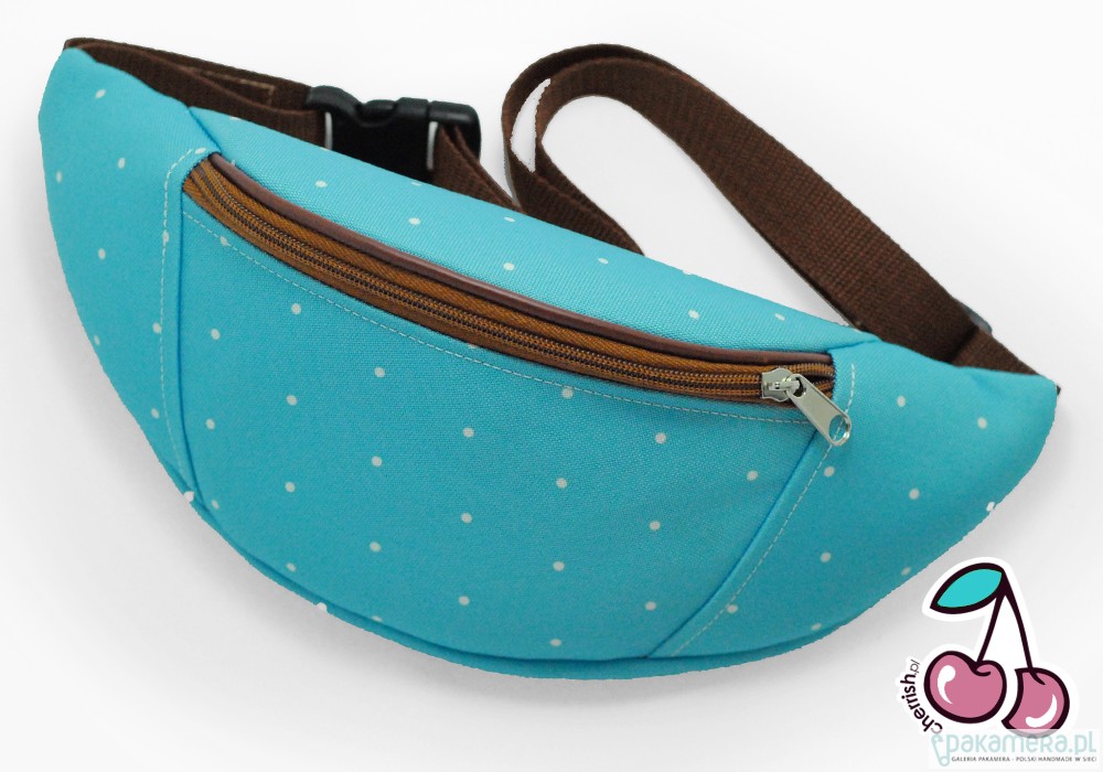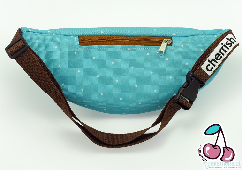 Nerka o klasycznym kształcie. Wykonana z poliestrowego materiału z nadrukowaną grafiką białych kropeczek na błękitnym tle. Wewnątrz znajduje się brązowa podszewka. Dopełnieniem jest brązowa matowa taśma wzmacniająca, biała nitka, oraz brązowy suwak. Na brązowym pasku znajduje się żakardowa metka cherrish