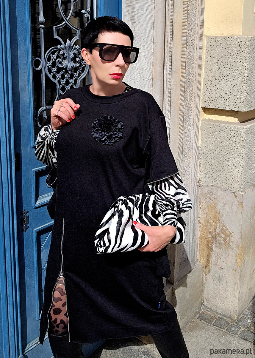 Sukienka/ Długa bluza z ozdobnymi zamkami na rękawach