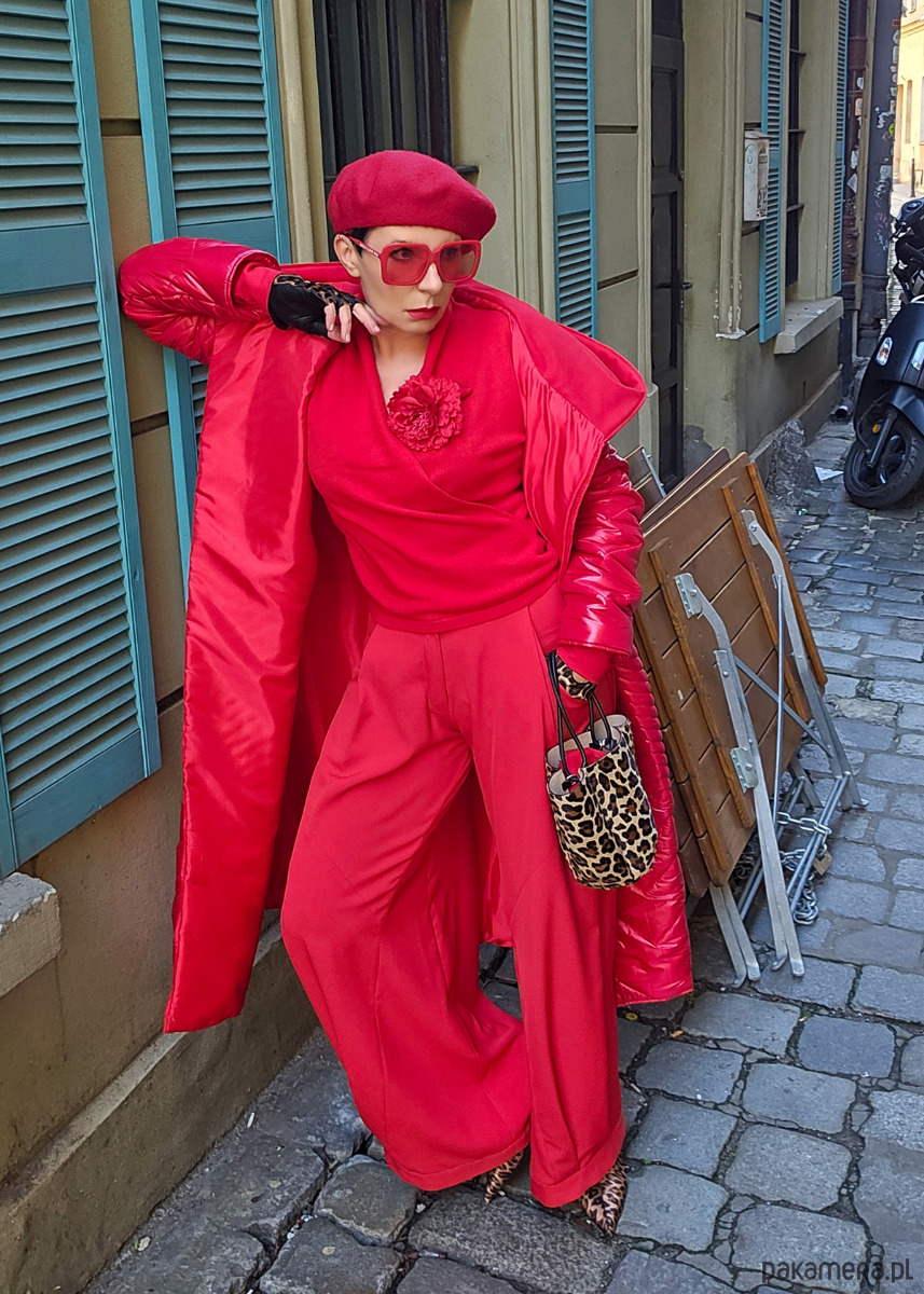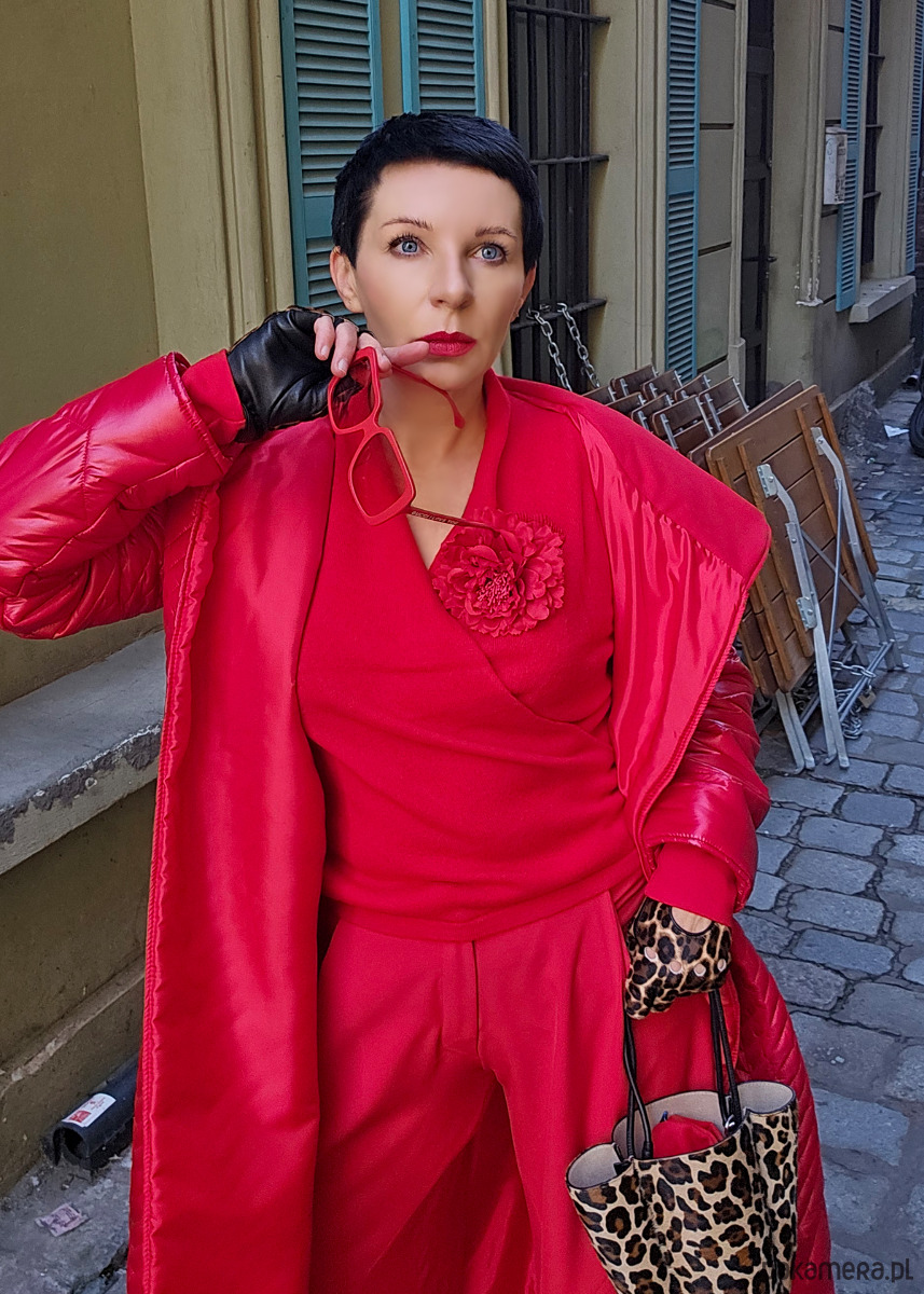 wykonany z 100% wełny w ponadczasowej i modnej czerwieni.