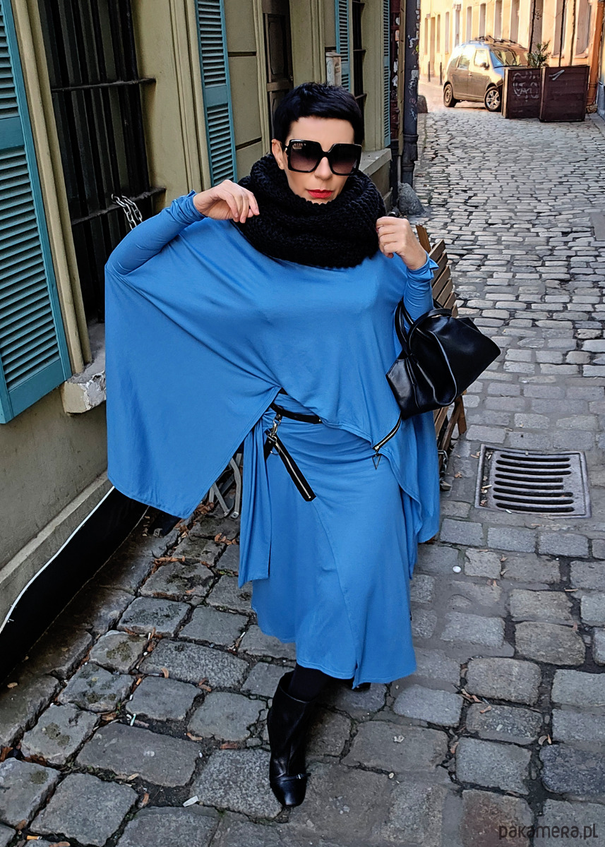 geometryczna bluzka/tunika niebieski jeans zamkiem wykończonym ozdobnym trójkątem