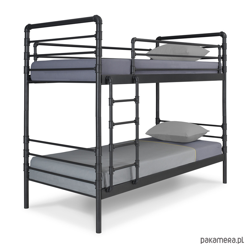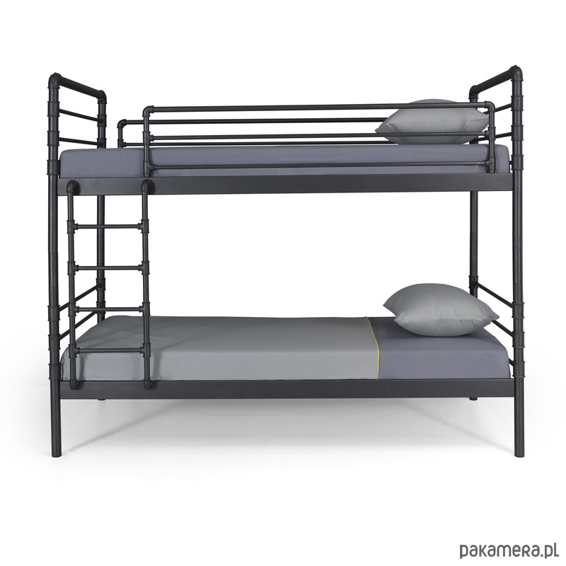 Piętrowe łóżko NEXUS to doskonały wybór do pokoju młodych miłośników stylu inudstrialnego. Ten zestaw doda zdecydowanego charakteru nowoczesnej sypialni dzieci i nastolatków. Piętrowy NEXUS może zostać z łatwością rozmontowany i stać się dwoma łóżkami. To doskonałe rozwiązanie dla zmian aranżacyjnych w sypialni lub w przypadku podjęcia decyzji o stworzeniu osobnych pomieszczeń dla rodzeństwa, które wcześniej dzieliło wspólny pokój. Drabina, jak i górne zabezpieczenie przed upadkiem mogą zostać usunięte. Stabilna i wytrzymała konstrukcja tego łóżka została pokryta nietoksyczną powłoką proszkową najwyższej jakości. Nogi zabezpieczono plastikowymi korkami. W cenie dwa stelaże wykonane z wypukłych listew bukowych, które pasują do wszystkich typów materacy.