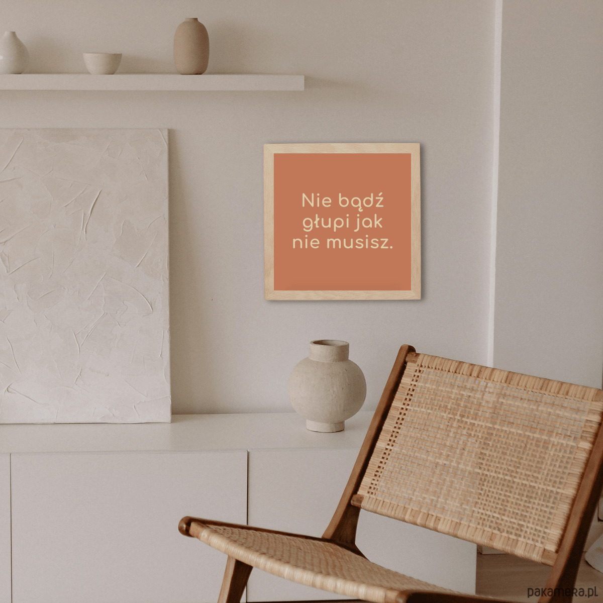 Plakat z zabawnym tekstem, w żywych kolorach iście z PRL-u uświetni każde pomieszczenie, bo dekoracyjne ma przeznaczenie. I u siostry i u kolegi, wujka, żony, ukochanego, babci, dziadka czy kuzynki, taki poster przebije wszystkie upominki. Tekst wydrukowany na wysokiej jakości papierze, oprawiony w ramkę jeszcze lepszej prezencji nabierze. Elegancki, więc sprawdzi się idealnie na podarek na wszelakie okazje: święta, Dzień Ojca, Dzień Dziecka, rocznica, zakończenie roku szkolnego, Walentynki, parapetówka, imieniny, osiemnastkę, awans, jubileusz a nawet Dzień Matki, czy urodziny. Minimalistyczny poster jak znalazł dla znajomych i członków rodziny. Niechaj taka prosta grafika z zabawną treścią zawiśnie na ścianie w kuchni, salonie, jadalni, czy w pokoju mamy, ciotki, syna, kuzyna i córki, a nawet w biurze w pracy.