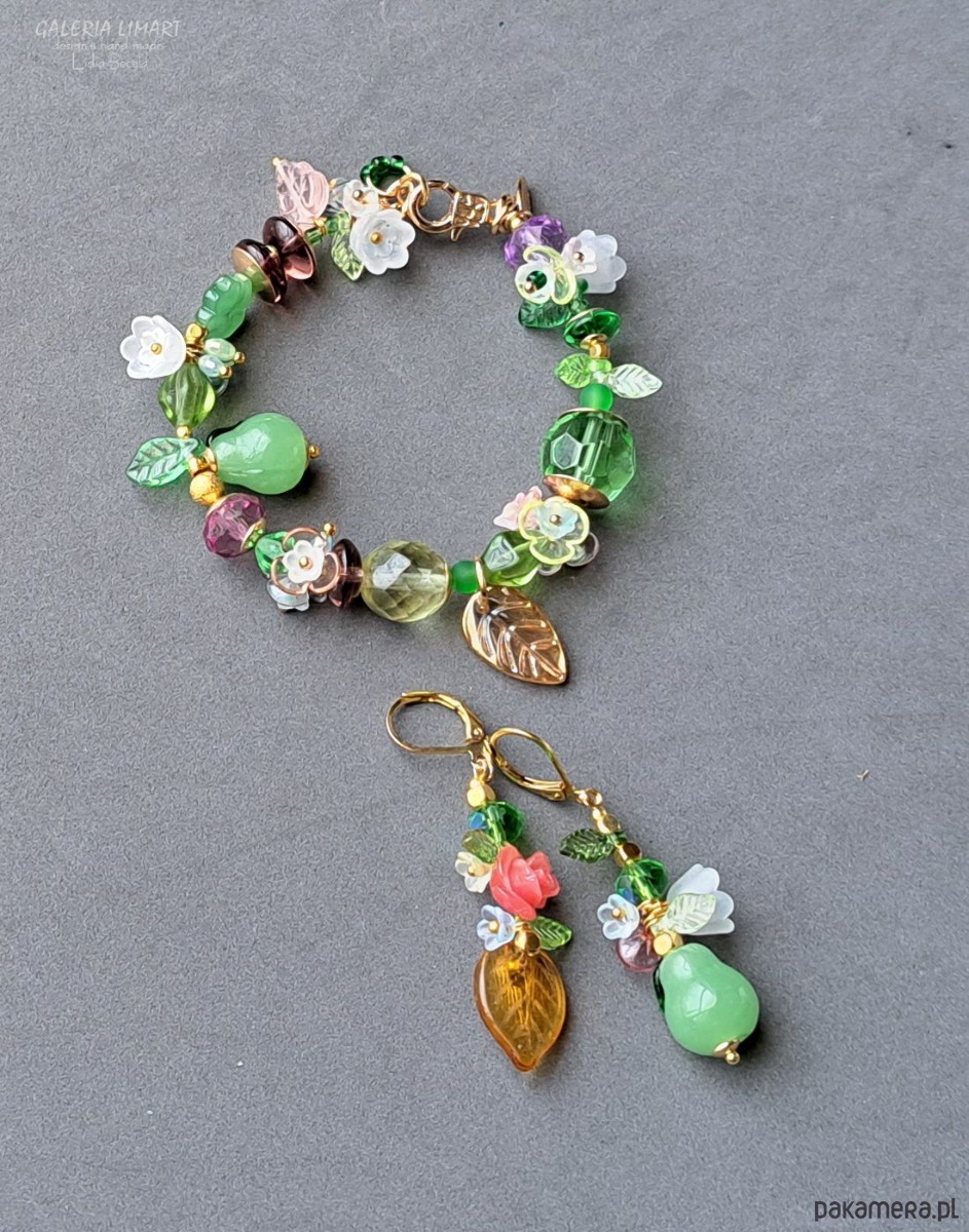 Oto urocza, subtelna i modna biżuterii ręcznie robionea. A jeśli lubisz taki styl to gorąco polecam ten słodki cudownie kolorowy i jedyny taki komplet efektownej i modnej biżuterii składający się z bransoletki i kolczyków.