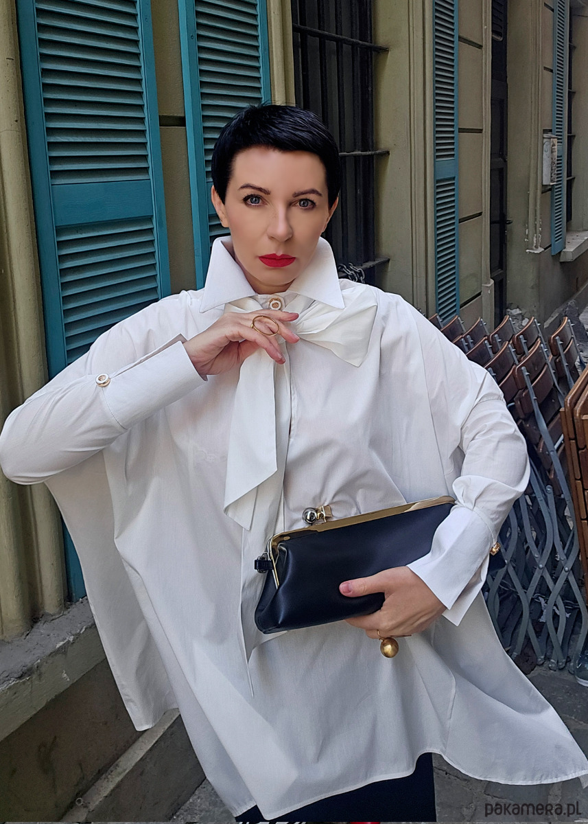 To koszula z pazurem o geometrycznym kształcie i długość idealnej do rurek czy dopasowanego dołu np ołówkowej spódnicy