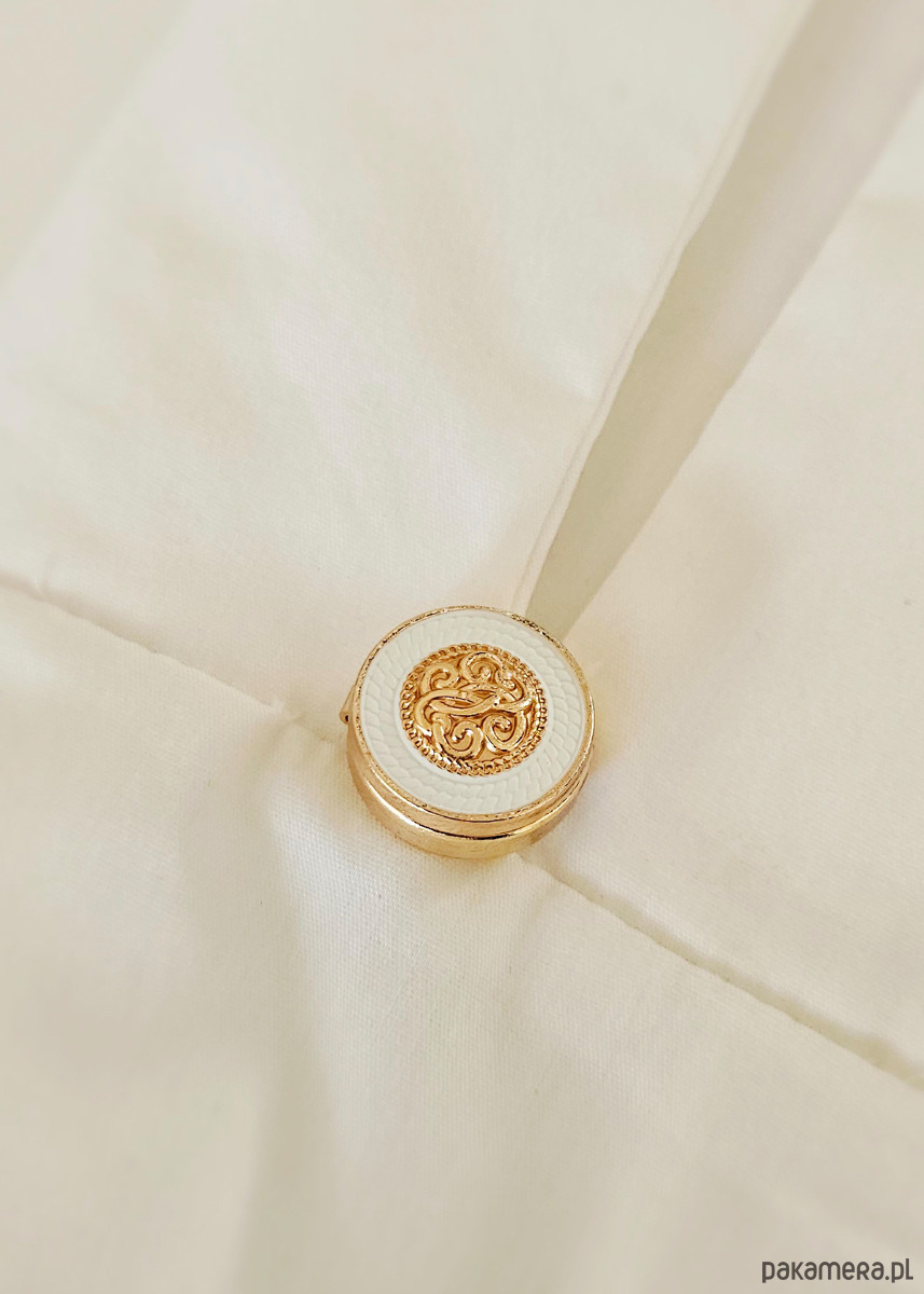 Biała Koszula PREMIUM z ozdobnymi broszkami i modnym wiązaniem jak z pokazów światowych domów mody