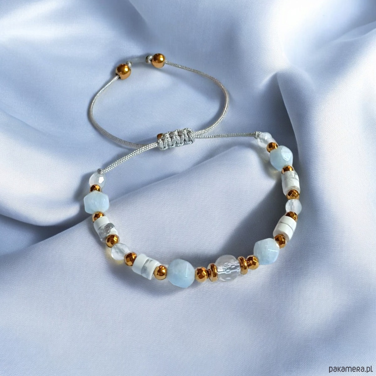 NIEBIAŃSKA bransoletka: kryształ górski, akwamaryn, howlit, agat, hematyt