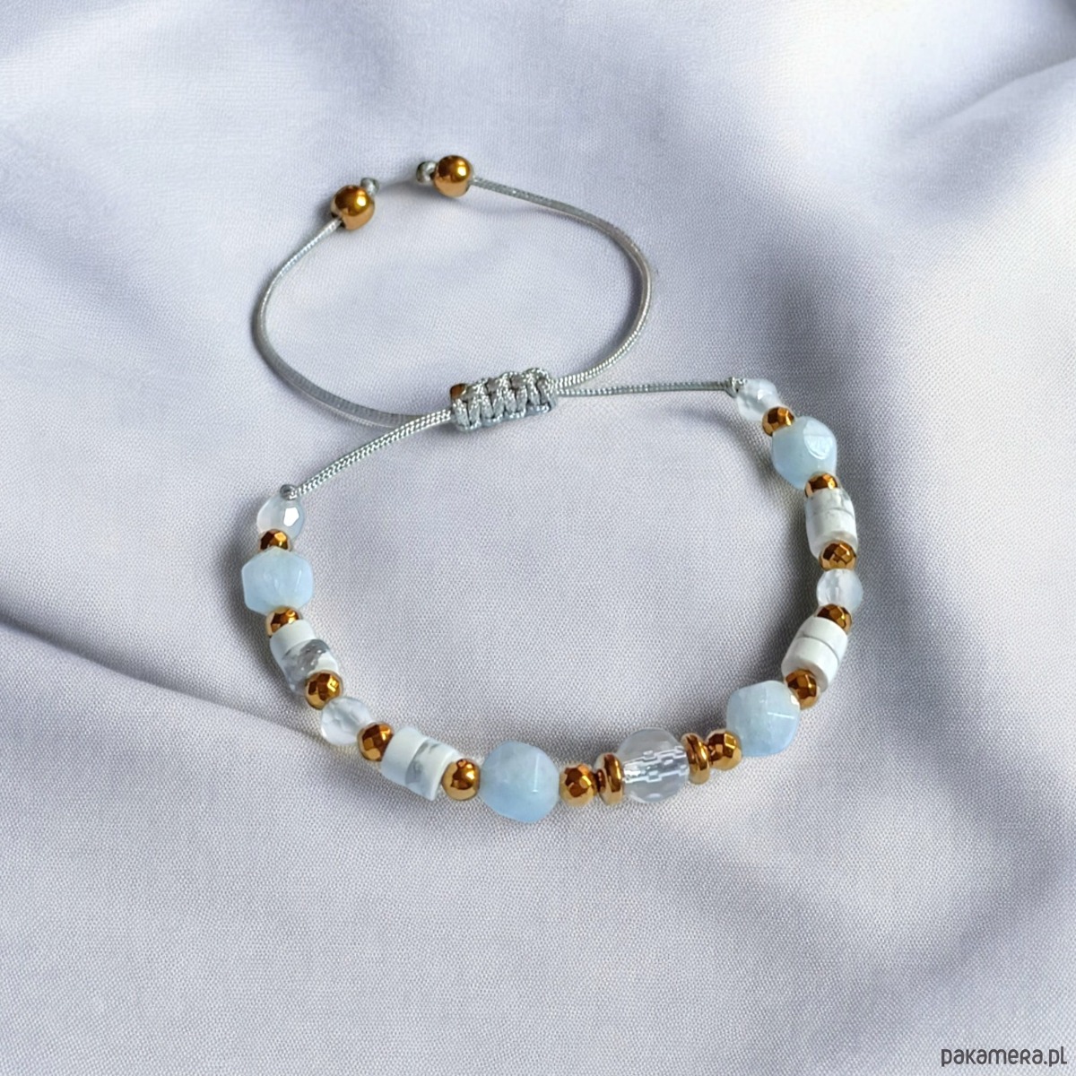 NIEBIAŃSKA bransoletka: kryształ górski, akwamaryn, howlit, agat, hematyt