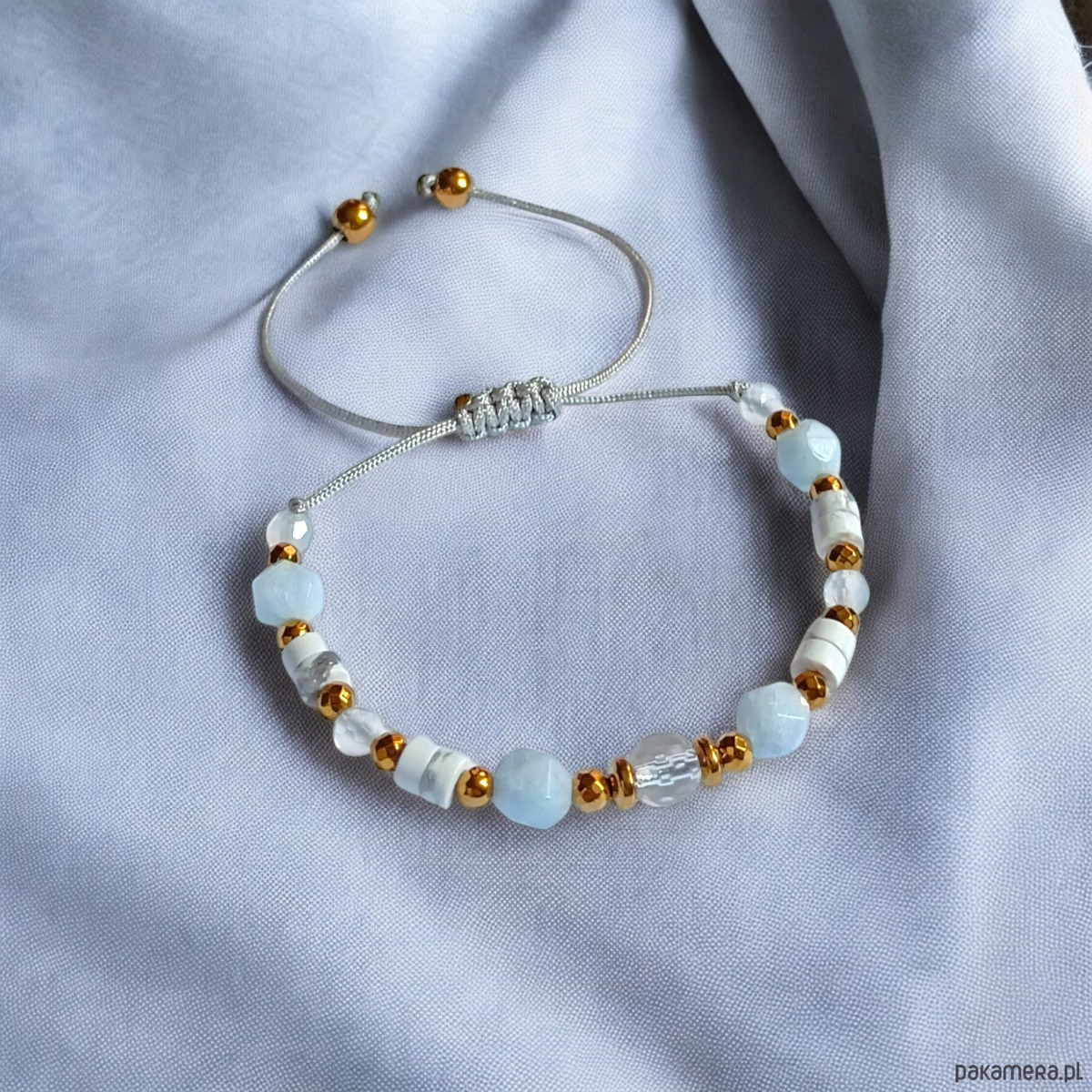 NIEBIAŃSKA bransoletka: kryształ górski, akwamaryn, howlit, agat, hematyt