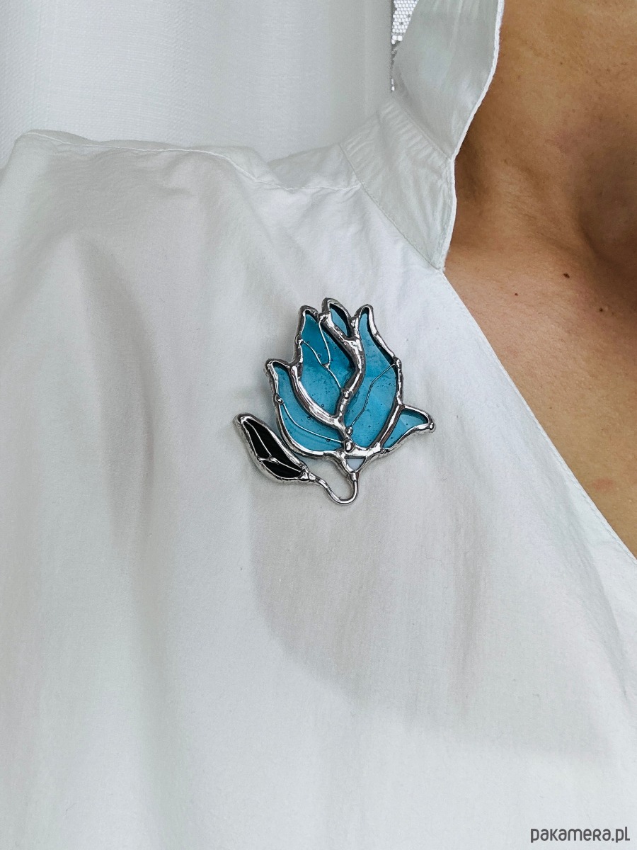 Niebieska broszka witrażowa Tiffany Kwiat Magnolia