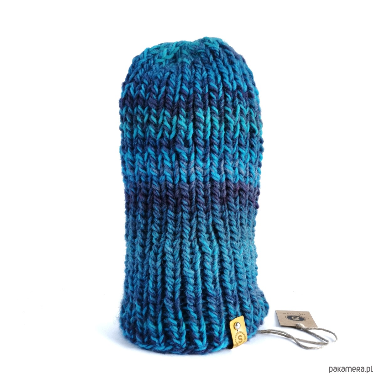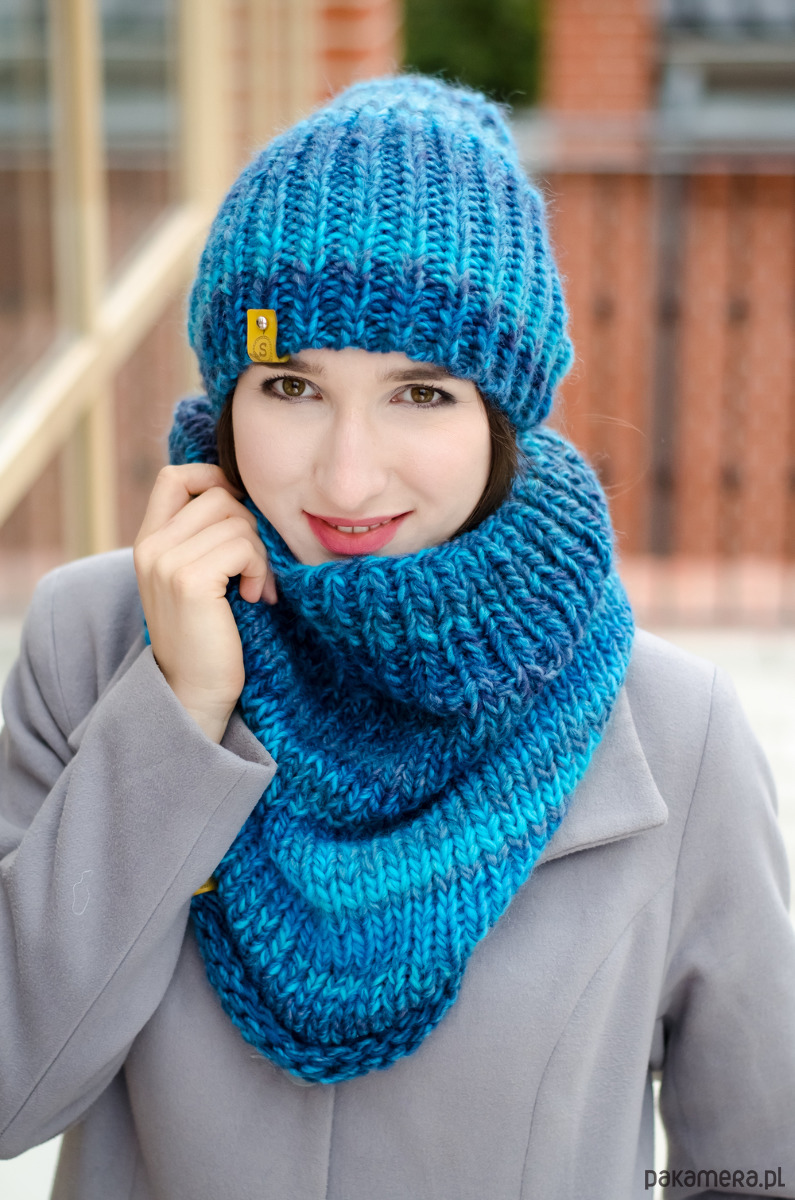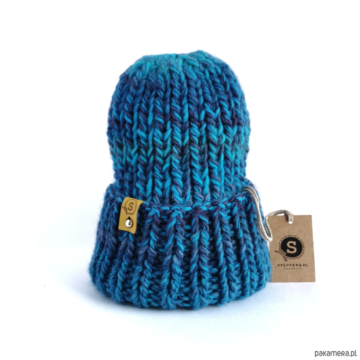 Niebieska czapka- w idealnym głębokim odcieniu niebieskiego z ciemniejszymi i jaśniejszymi pasmami.