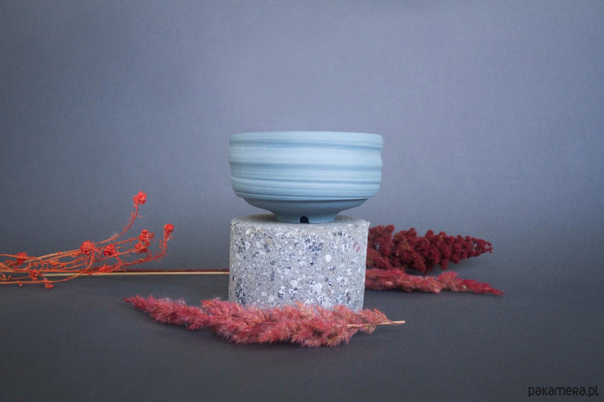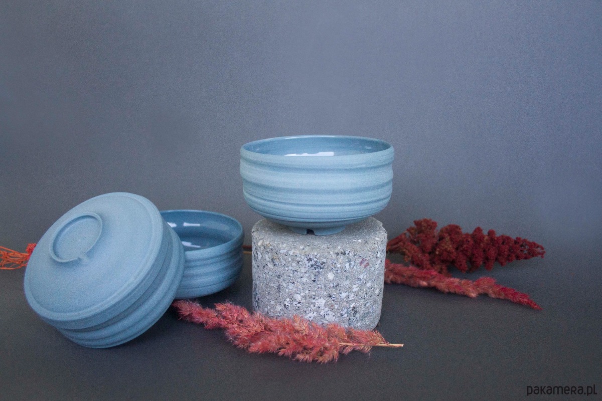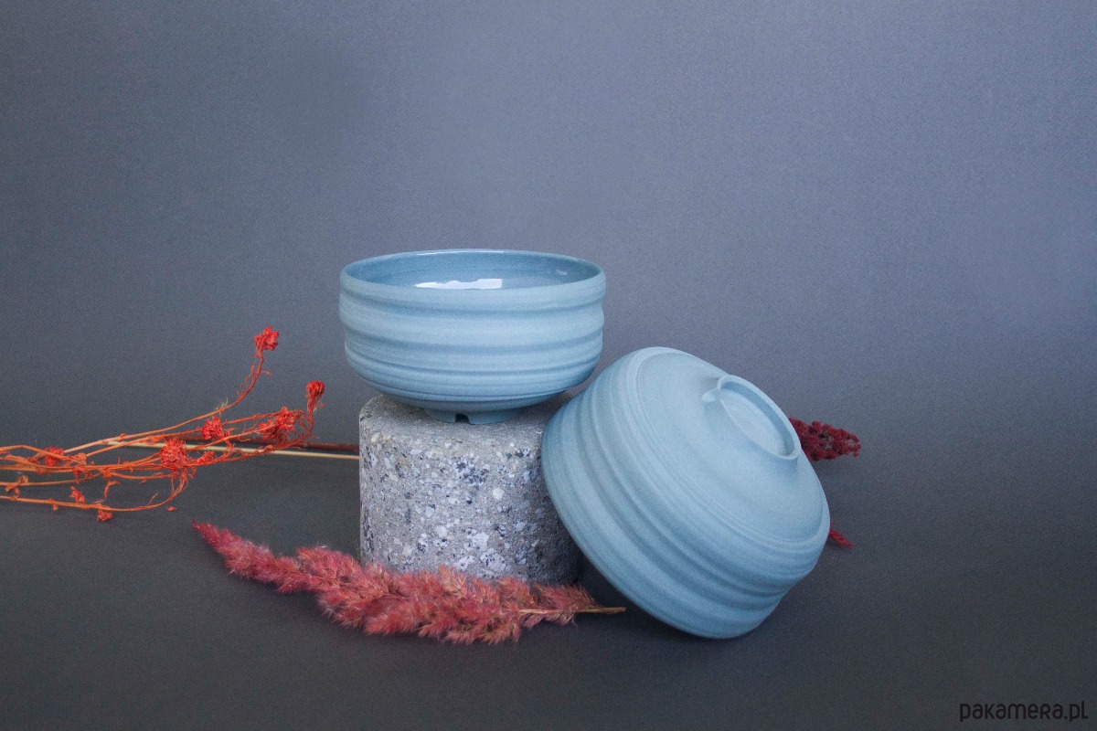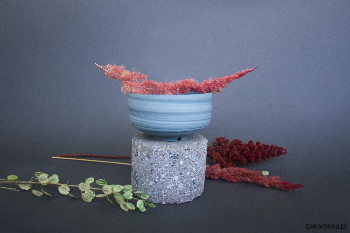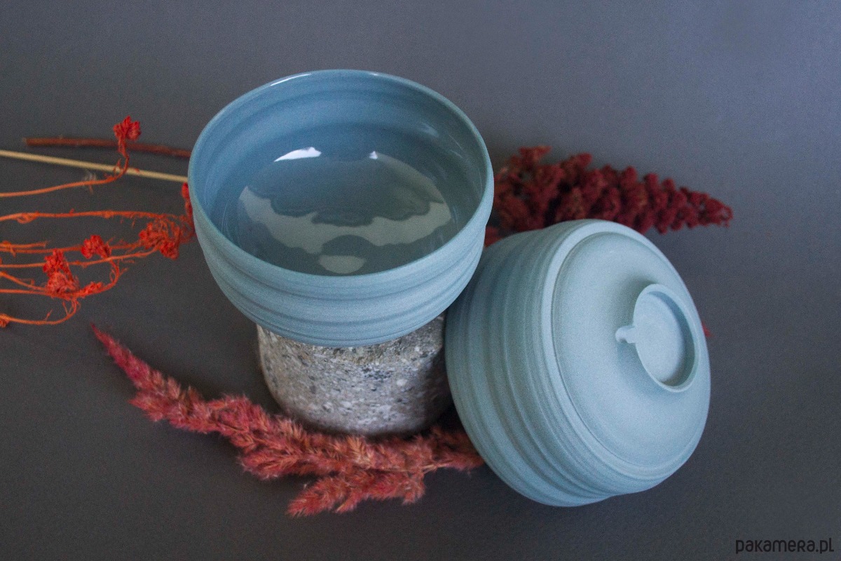 Ręcznie wykonana ceramiczna czarka w kojącym odcieniu niebieskiej kamionki.