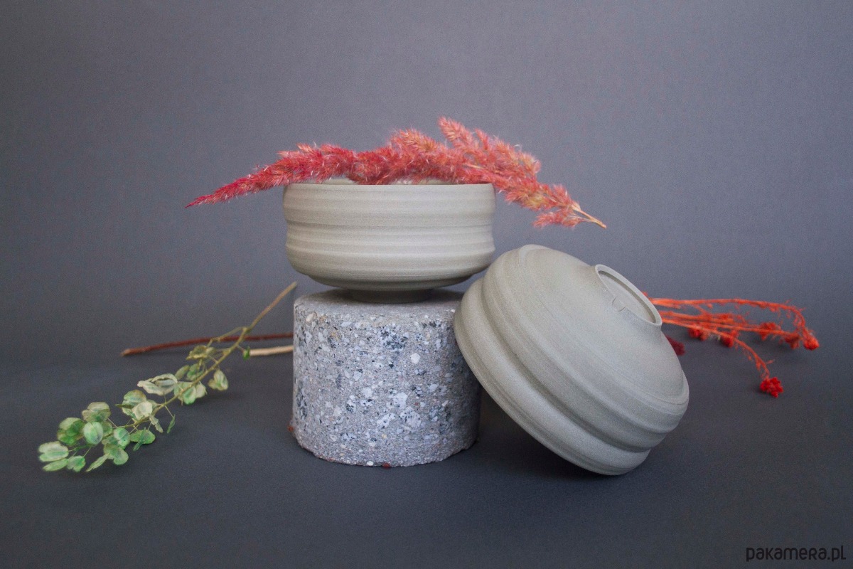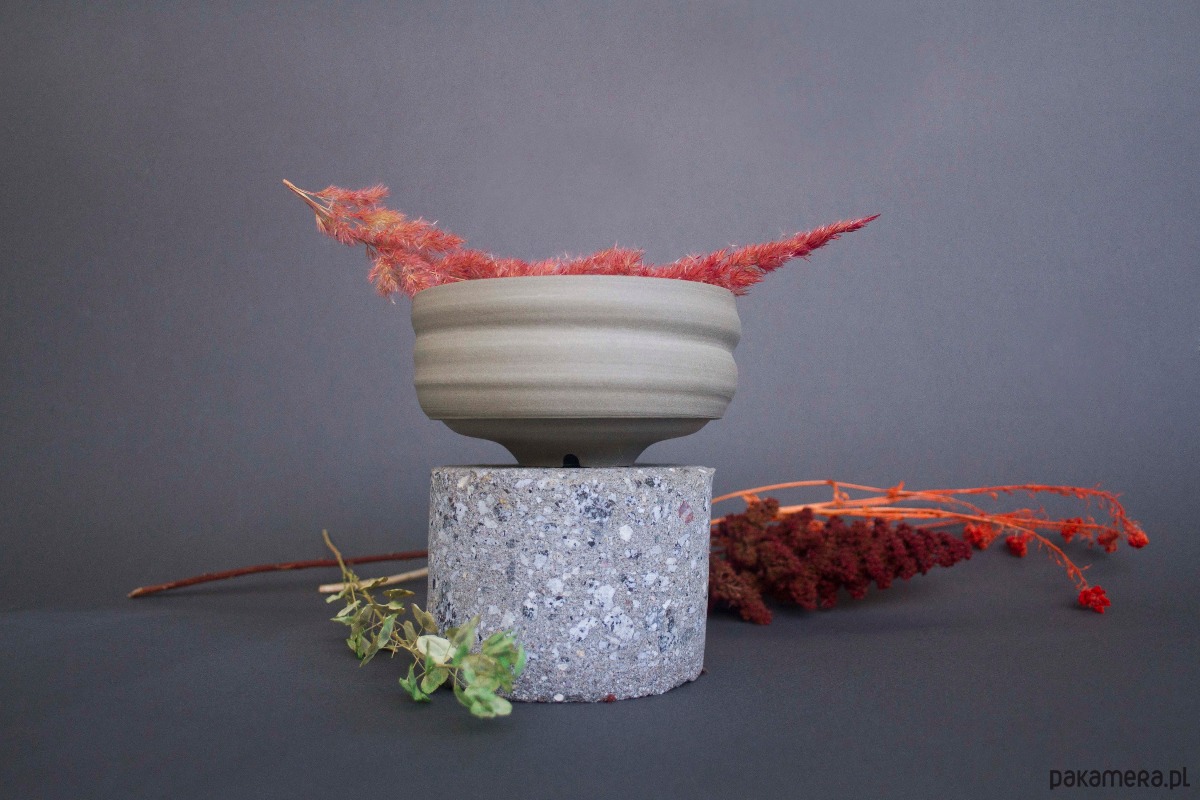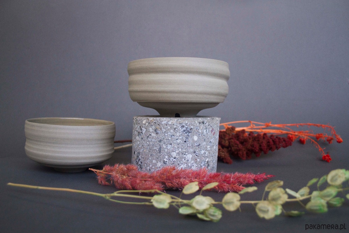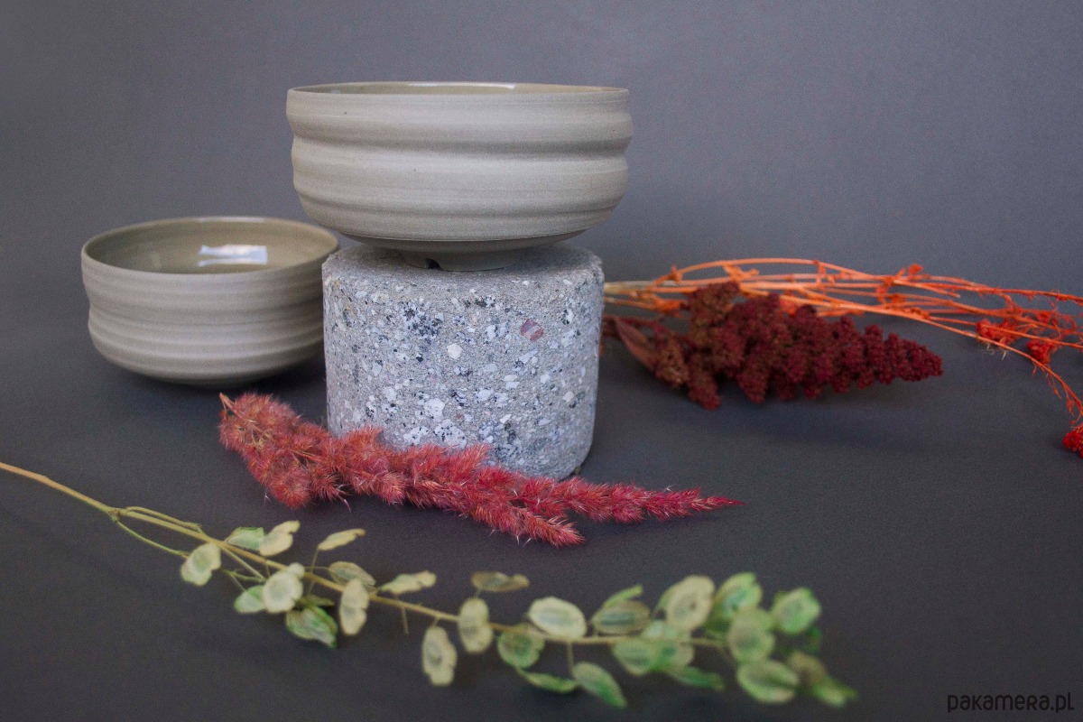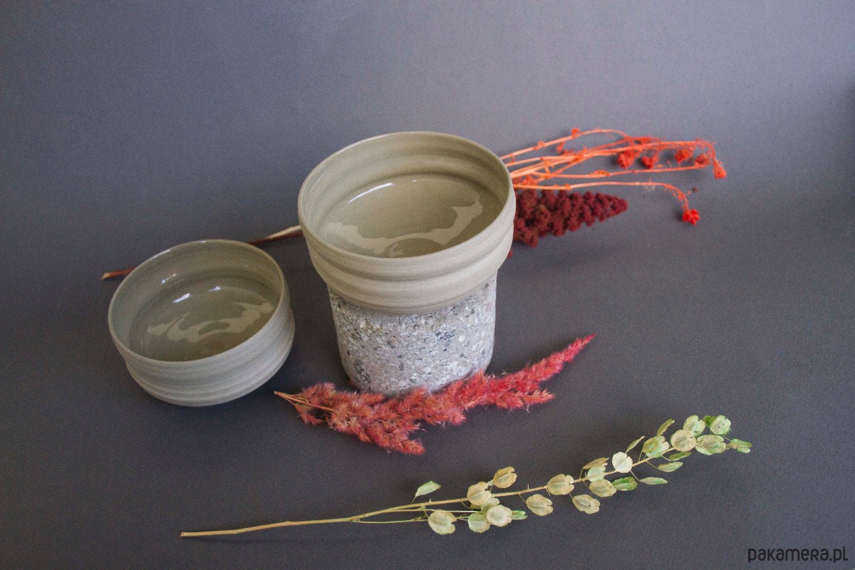 Ręcznie wykonana ceramiczna czarka w kojącym odcieniu oliwkowej kamionki.