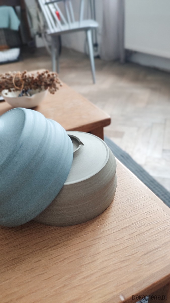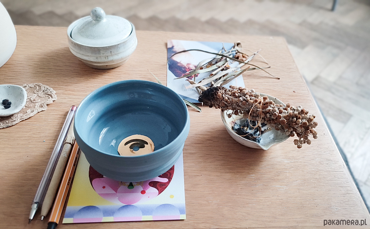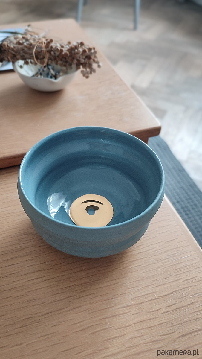 Ręcznie wykonana ceramiczna czarka w kojącym odcieniu niebieskiej kamionki.