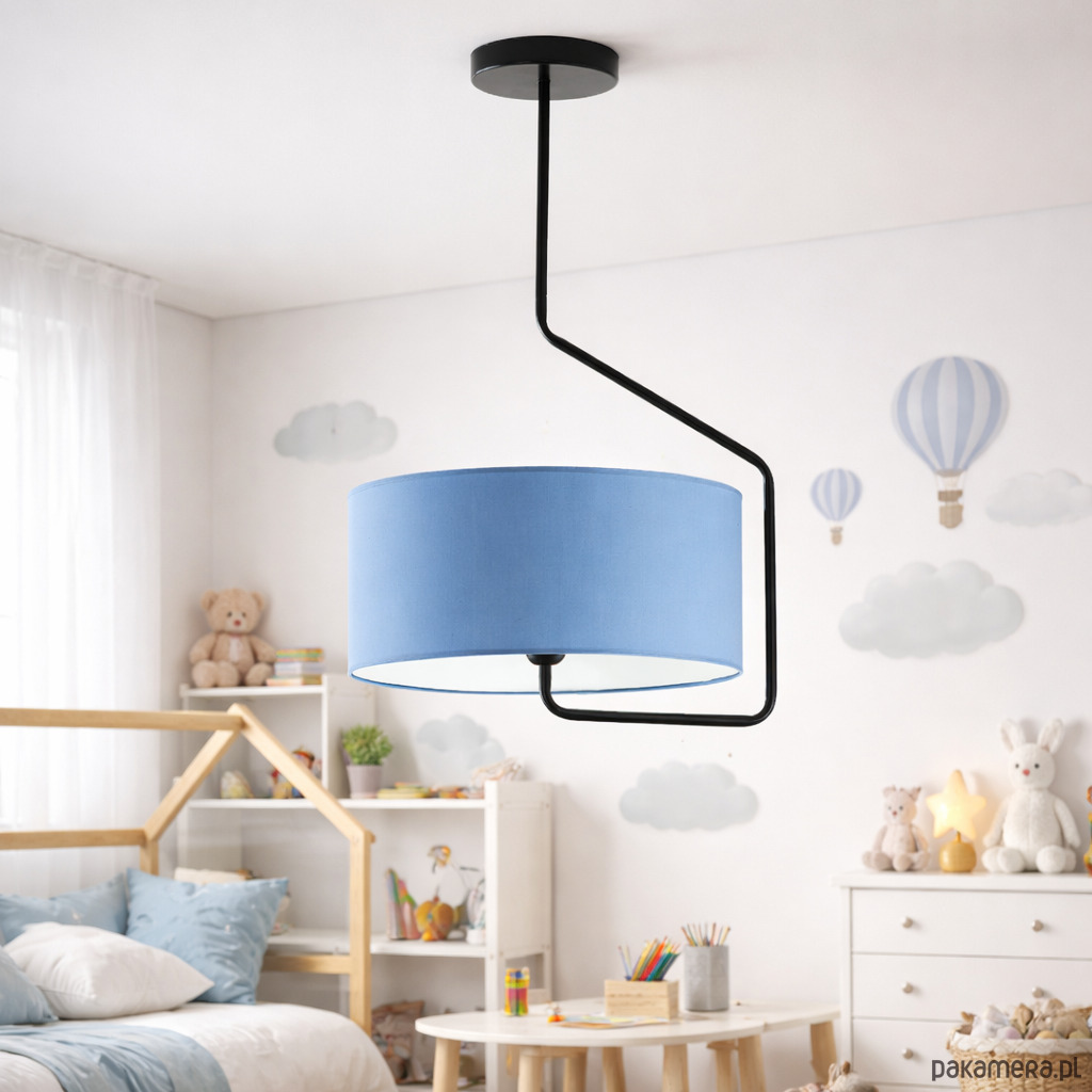Niebieska lampa sufitowa do pokoju chłopca LAVRIO KIDS z abażurem 40 cm
