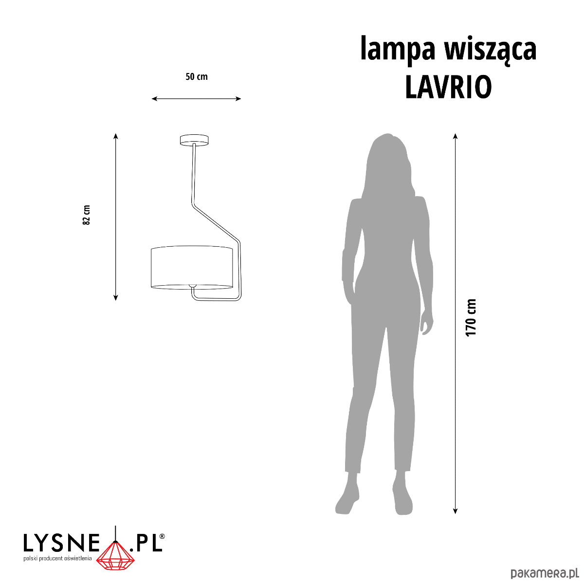 Materiał: stelaż - elementy metalowe, abażur - holenderska tkanina tekstylna podklejona na folii PVC