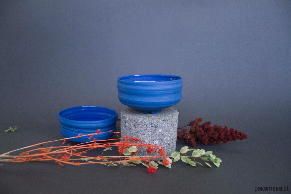 Ręcznie wykonana ceramiczna czarka w intensywnym, wibrującym odcieniu niebieskiej porcelany.