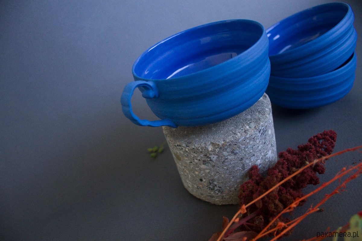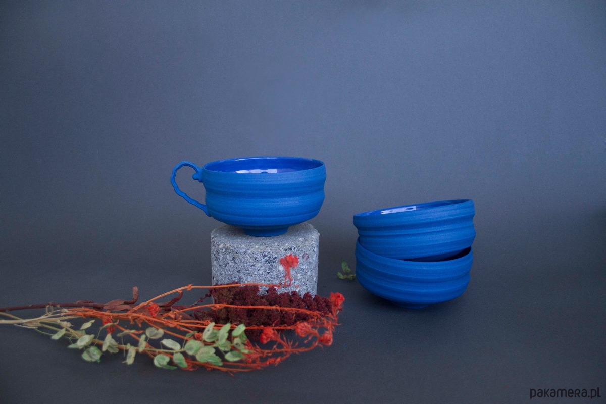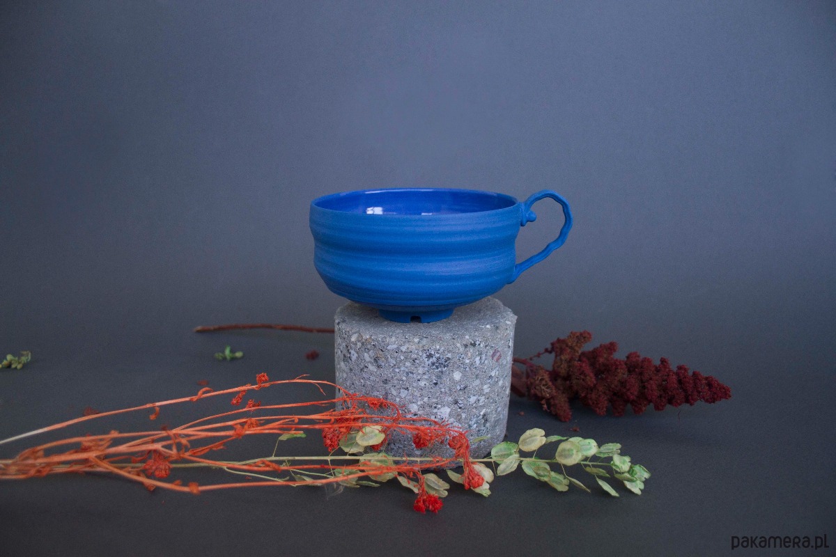 Ręcznie robiona filiżanka z intensywnie niebieskiej porcelany.
