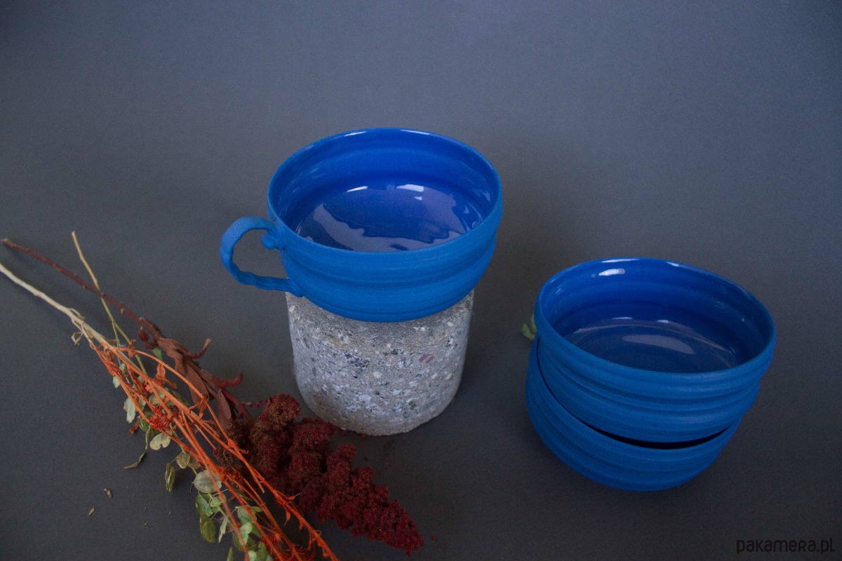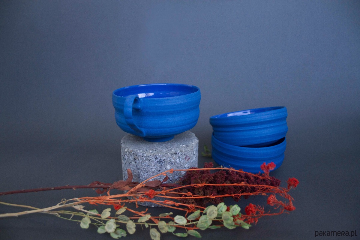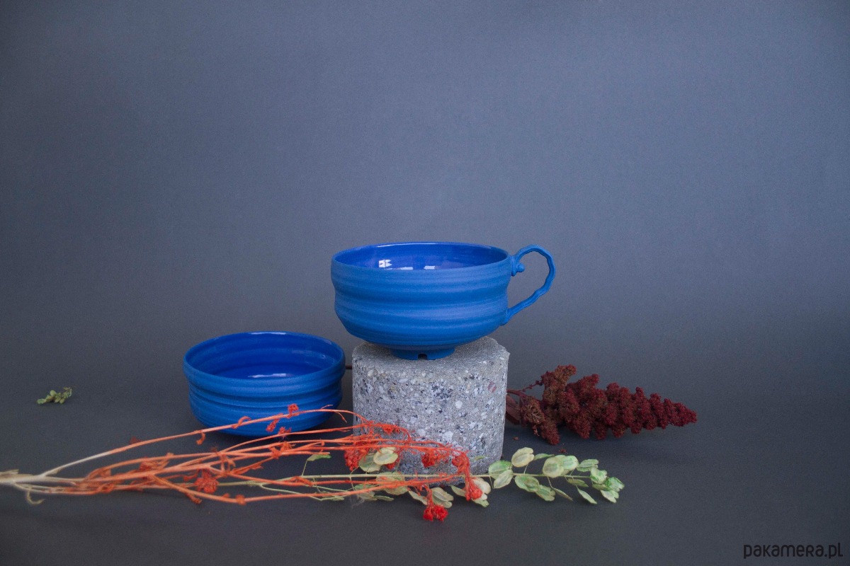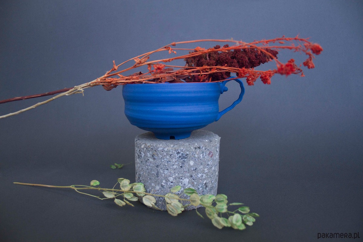 Ręcznie robiona filiżanka z intensywnie niebieskiej porcelany.