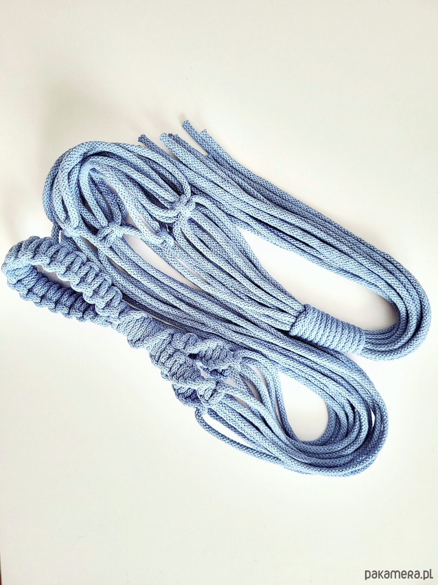 * Materiał: sznurek pleciony (produkowany w Polsce) gr.5mm, bawełna z poliestrowym rdzeniem.