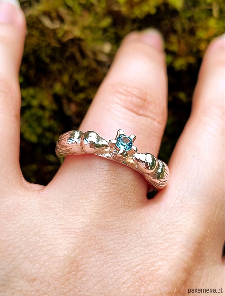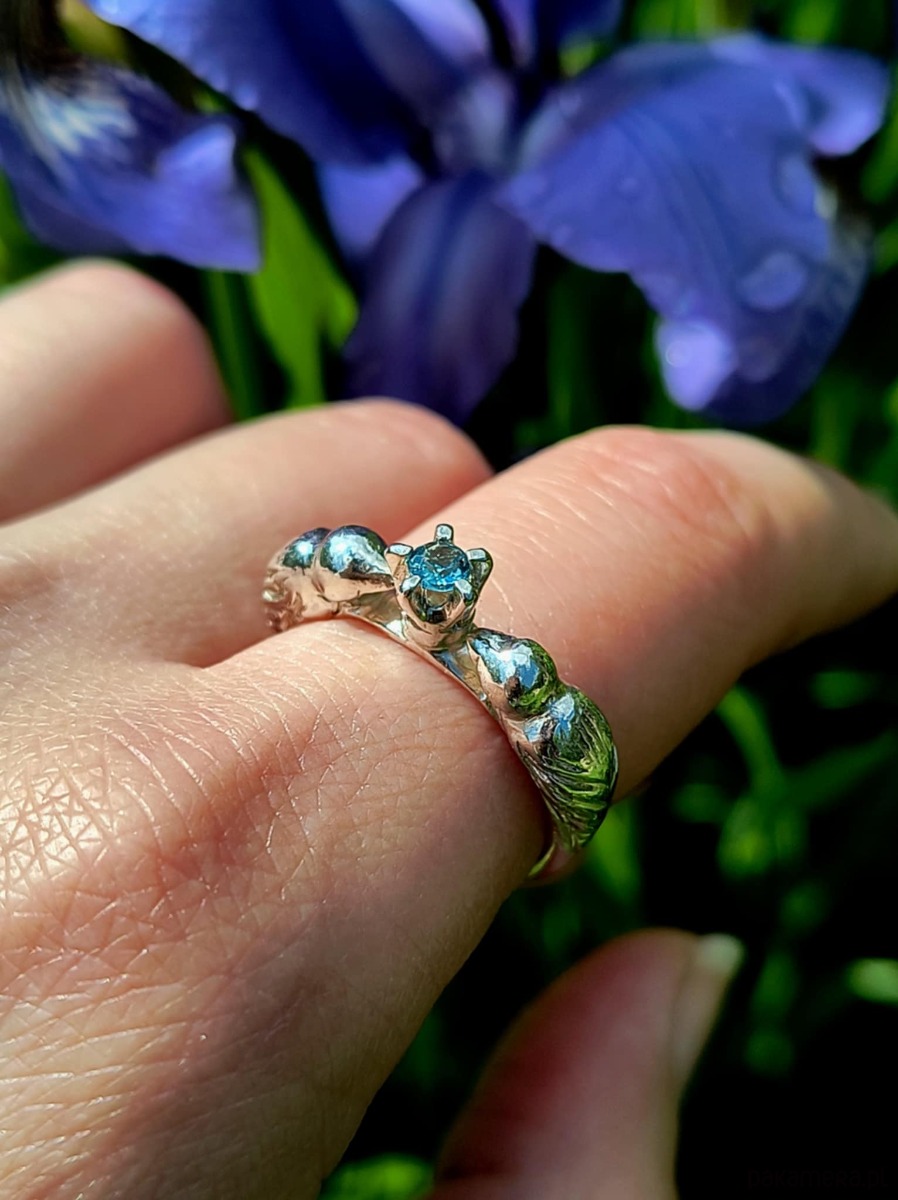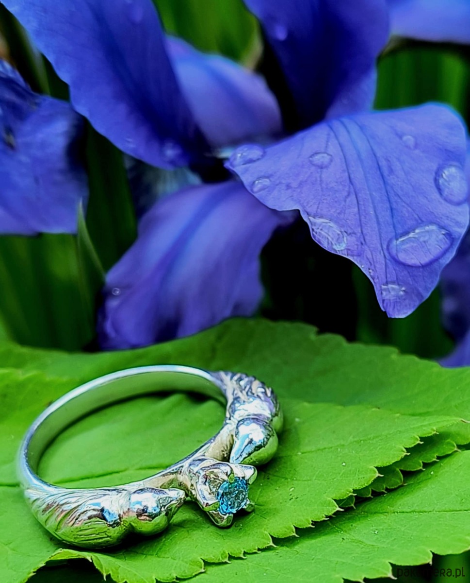 To piękny ozdobny pierścień,którego sercem jest naturalny błękitny topaz.