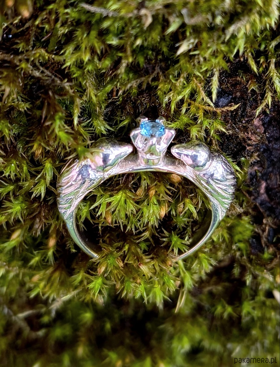 Niebieski Ptaki pierścionek ze srebra z błękitnym topazem