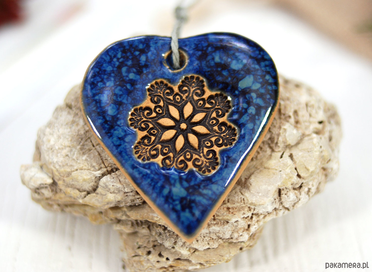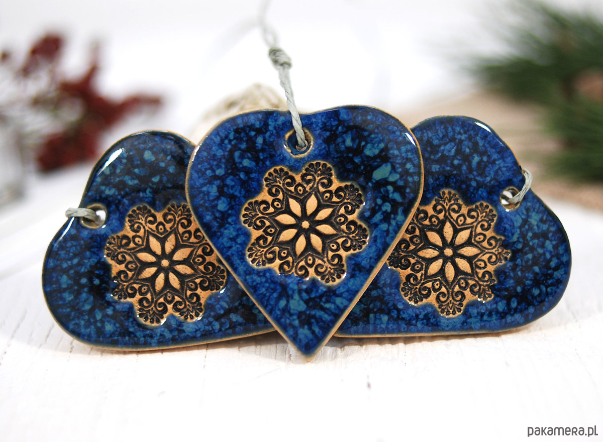 Niebieskie serca z mandalą - ceramiczne ozdoby choinkowe