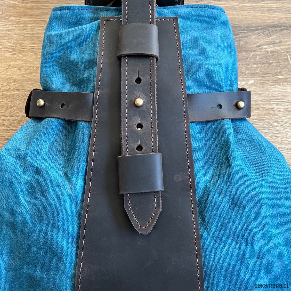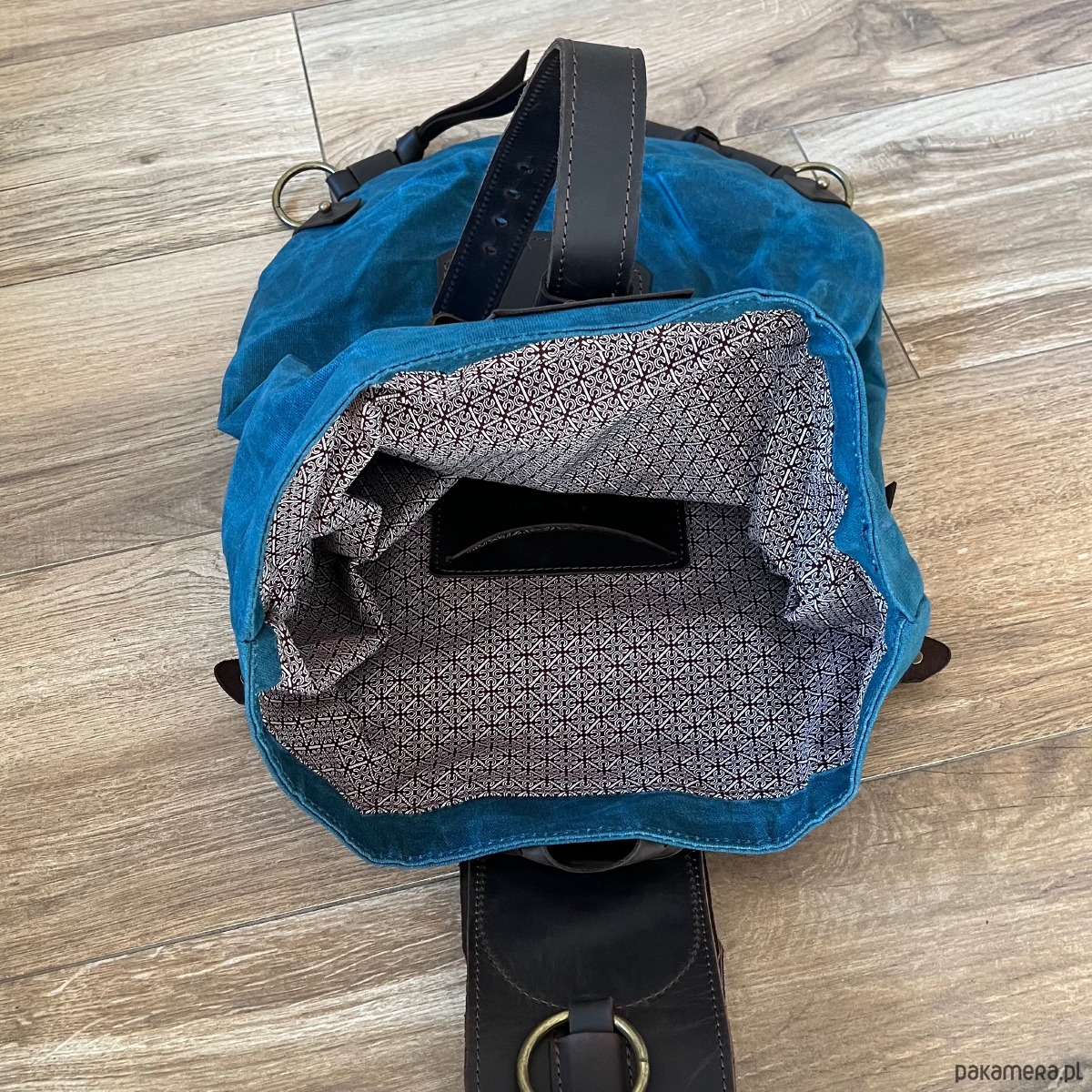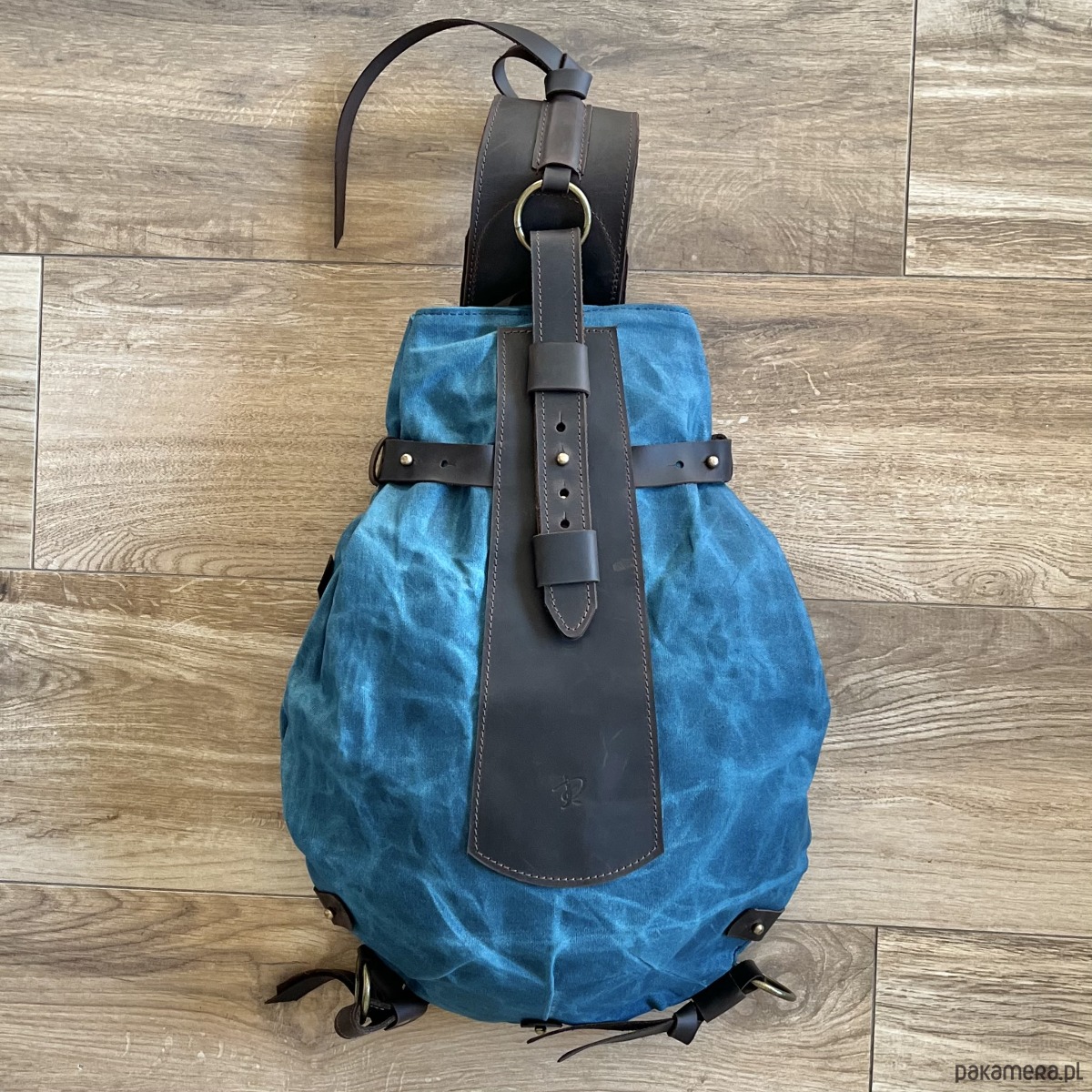 Niebiesko brązowy plecak Bukłak z bawełny woskowanej Vintage.