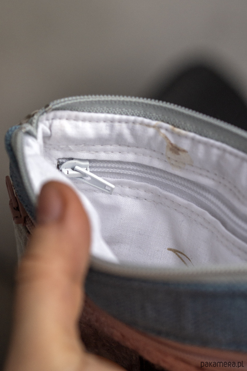 Idealny na karty płatnicze oraz pieniądze. Zapinany na suwak, z przodu kieszonka na drobne, w środku bawełniana podszewka i kieszonka na suwak.