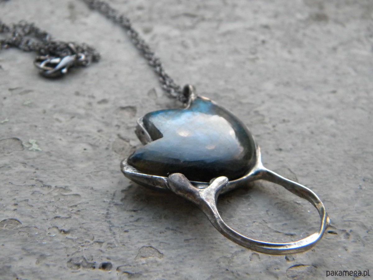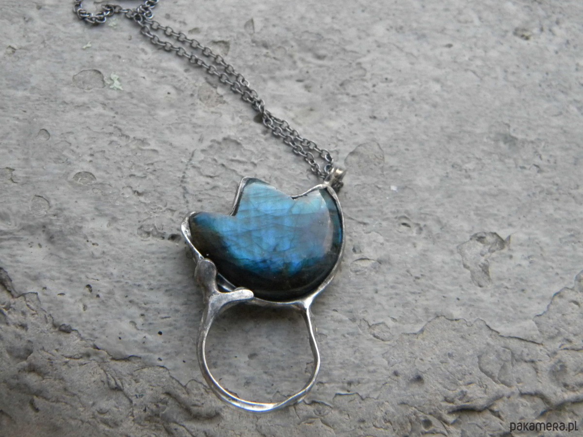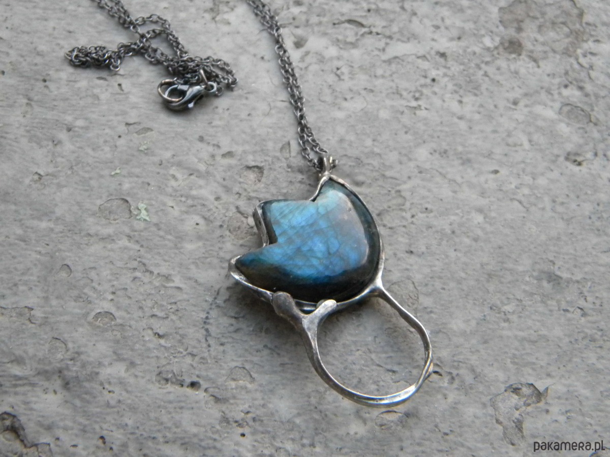 Niebieskozielony labradoryt kwiatek - naszyjnik