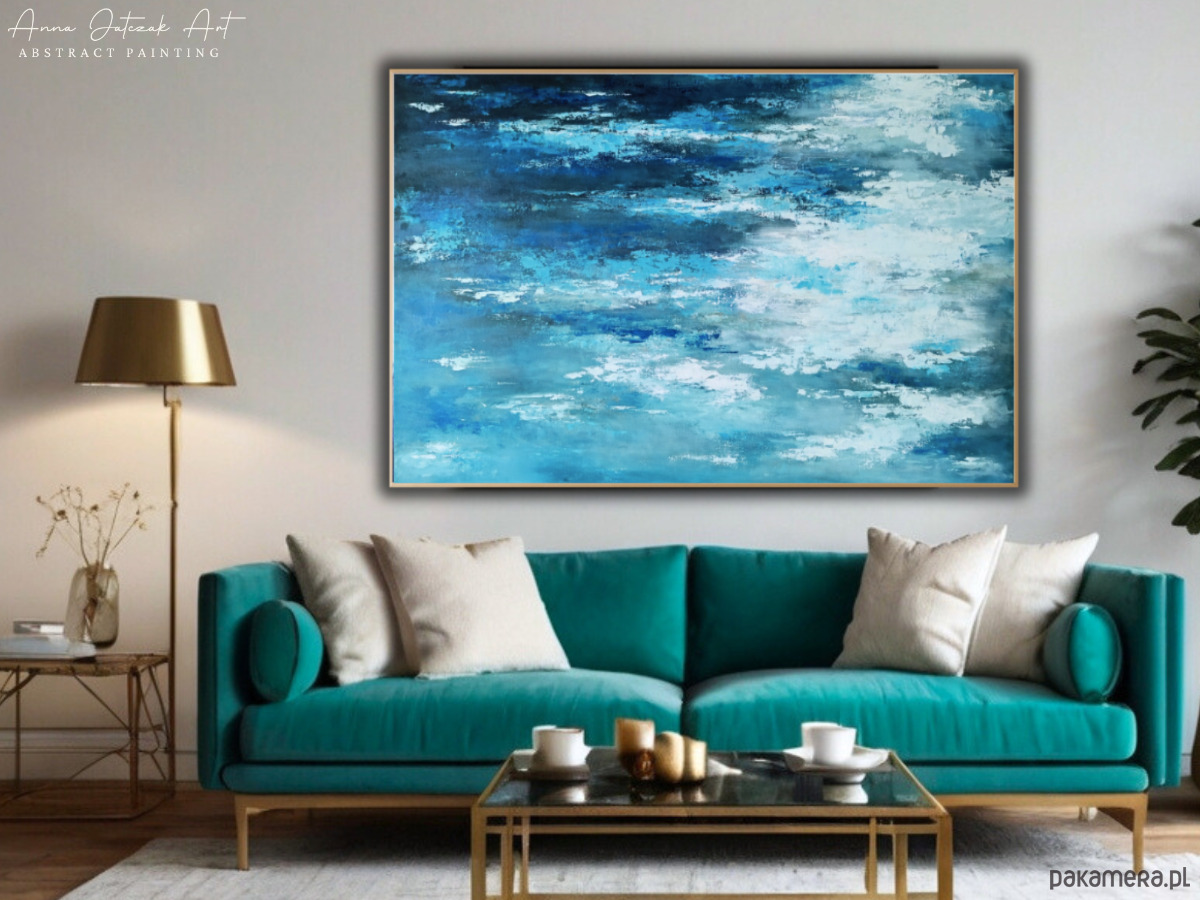 NIEBO II Abstrakcyjny obraz akrylowy,ręcznie malowany na płótnie, 100x70 cm