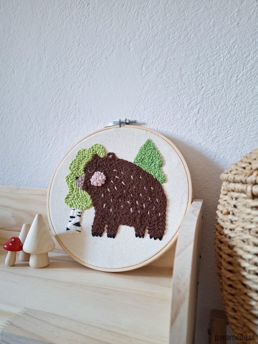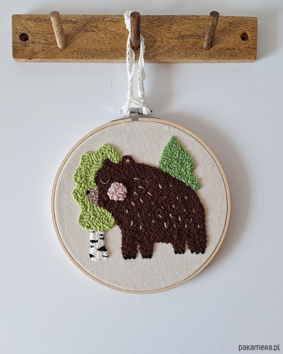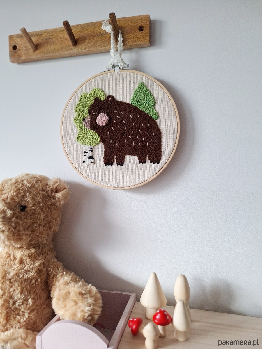 Wnieś magię lasu do pokoju swojego dziecka z tą uroczą zawieszką na ścianę z wizerunkiem leśnego misia.