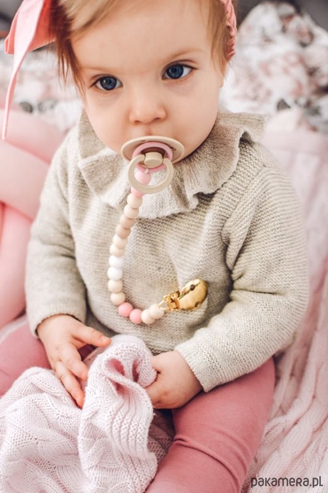 Jest lekka dzięki czemu dziecko nie powinno mieć trudności z utrzymaniem jej w rączce.Lekkość i odpowiednia długość sprawia, że ZAWIESZKA nie ciągnie smoczka z buzi.Pastelowe kolory sprawiają, że cieszy oko pociechy i mamy.Elementy zawieszki z naturalnego drewna mogą się różnić od siebie strukturą i barwą.Silikonowa obręcz pasuje do większości smoczków dostępnych na rynku.Ułatwia ściąganie ZAWIESZKI na czas snu dziecka.Uniwersalny klips bardzo dobrze trzyma się ubranka, dzięki czemu smoczek będzie zawsze pod ręką.Każda sztuka produkowana jest ręcznie w Polsce.Zawieszka jest bezpieczna i eko-friendly.Produkt jest zgodny z normą EN 12586:2007+A1:2011