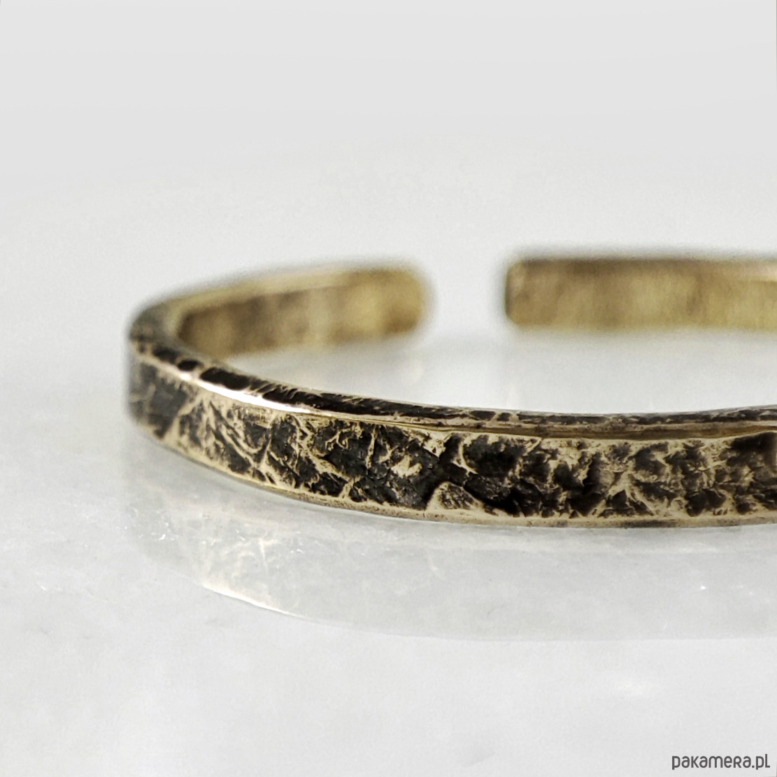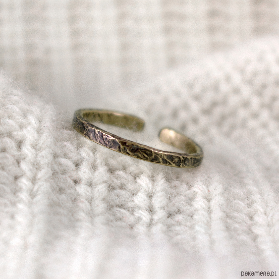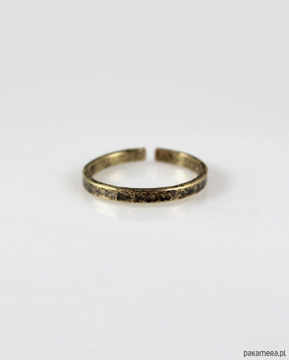 Pierścionek został wykonany z mosiądzu, jego szerokość to ok 0,25 cm.