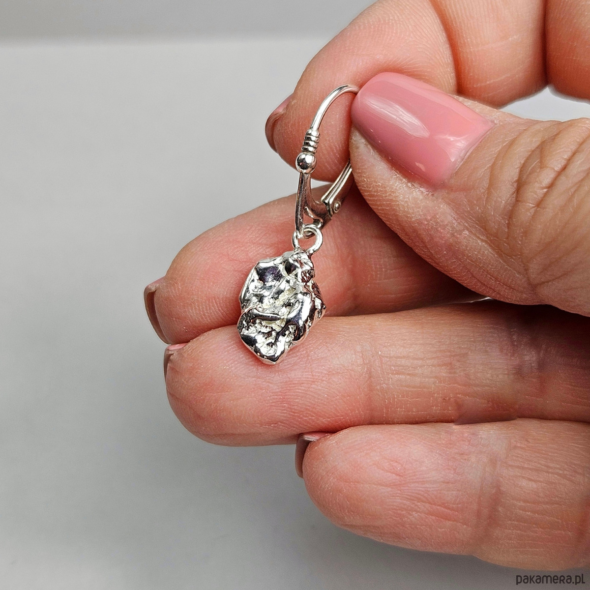 Nieregularne gniecione wiszące kolczyki srebrne BRYŁKI