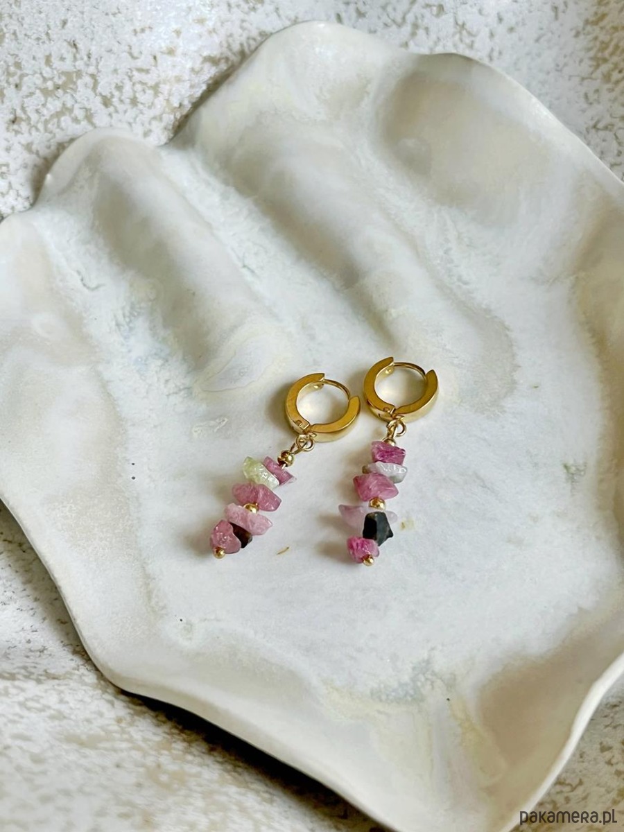 Unikatowe kolczyki wykonane ze stali szlachetnej i naturalnych turmalinów to propozycja dla kobiet, które cenią oryginalność i subtelną elegancję w nowoczesnym wydaniu. Każdy kamień ma nieregularną formę i niepowtarzalny odcień, dzięki czemu kolczyki tworzą wyjątkową kompozycję – nie ma dwóch identycznych par.