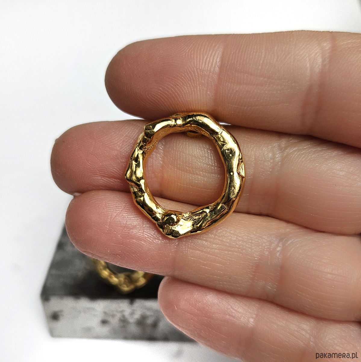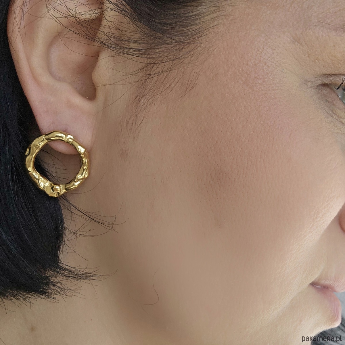 Kolczyki koła o nieregularnym kształcie, bardzo stylowe i niebanalne.
