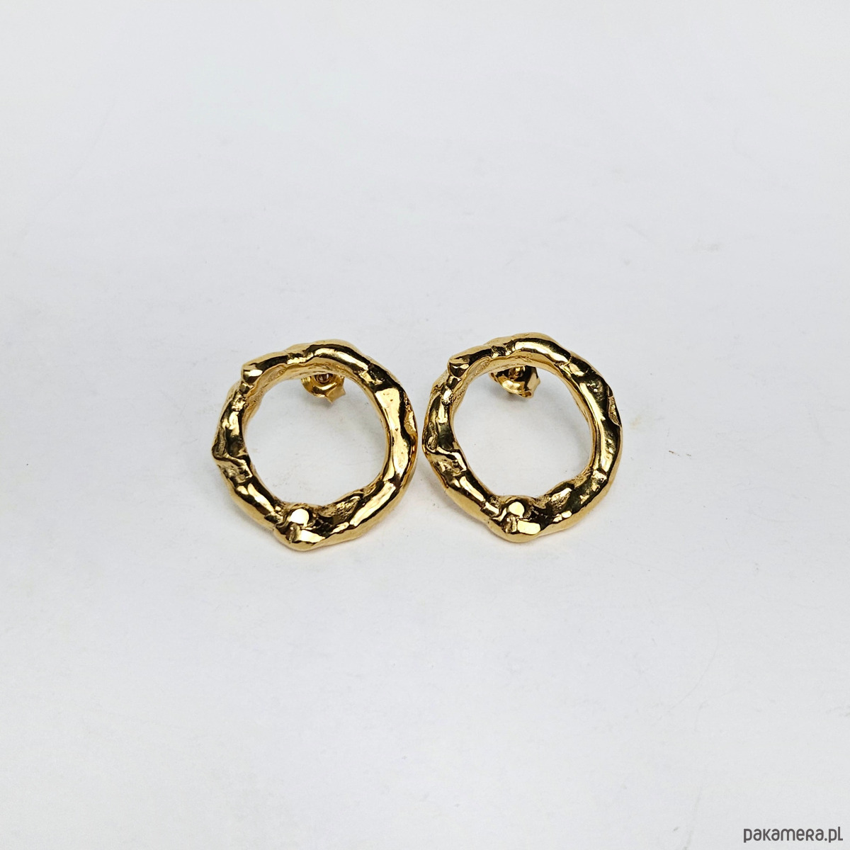 Nieregularne srebrne kolczyki kółka pozłacane sztyfty