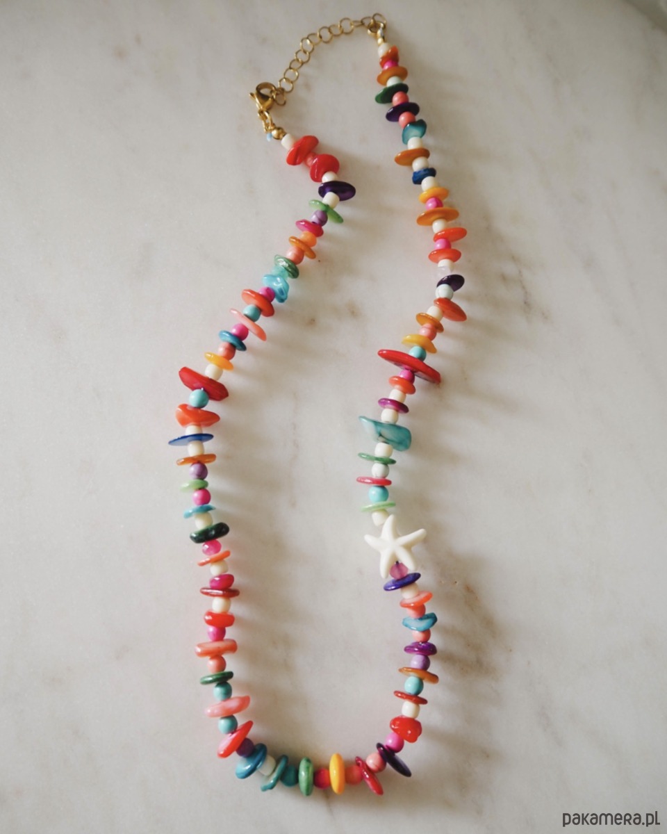 Naszyjnik z muszli i mieszanki kamieni z rozgwiazdą. Kolorowa bomba endorfin. Wykonany ręcznie.