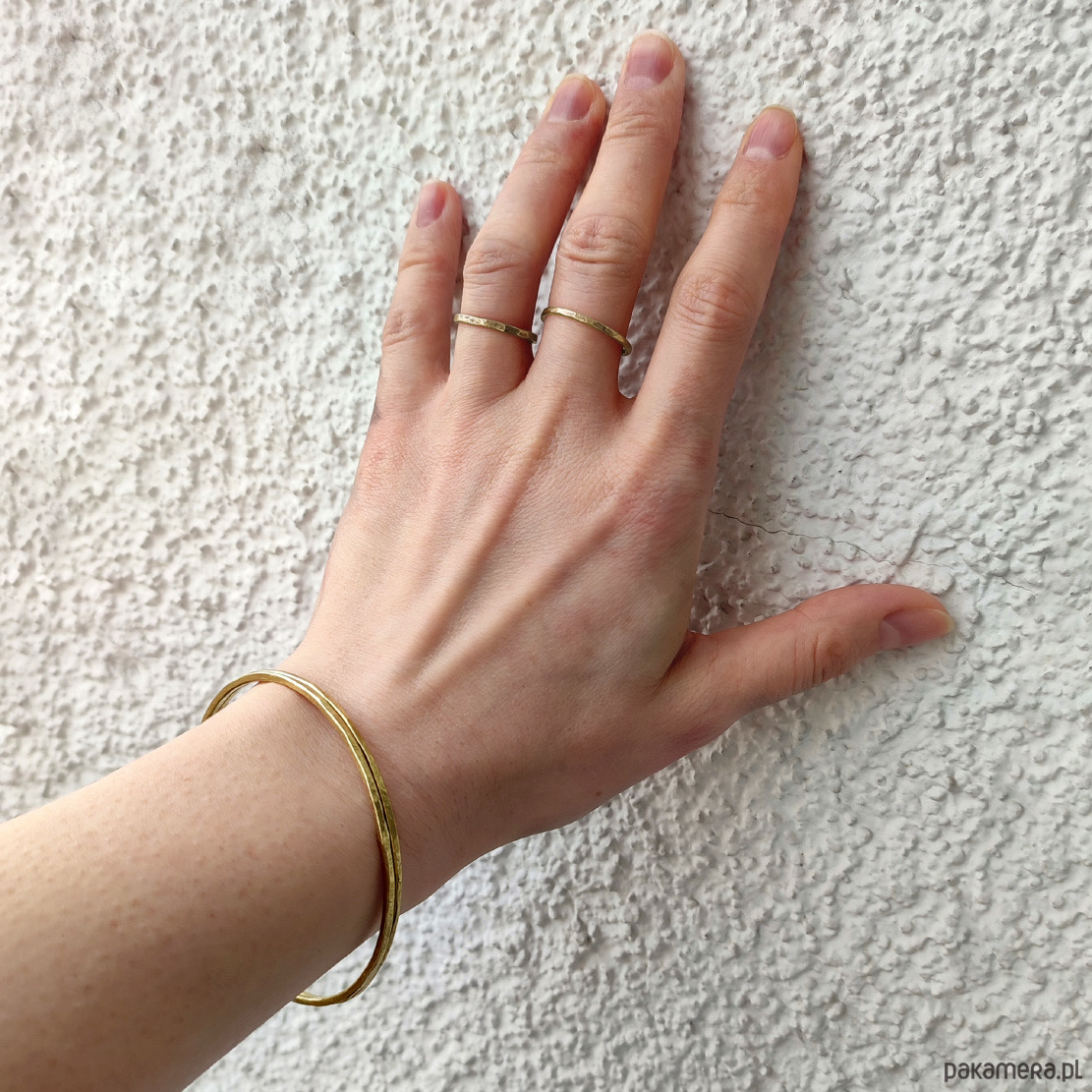Bransoletka wykonana w całości z mosiądzu. Jej szerokość to ok 2 mm.