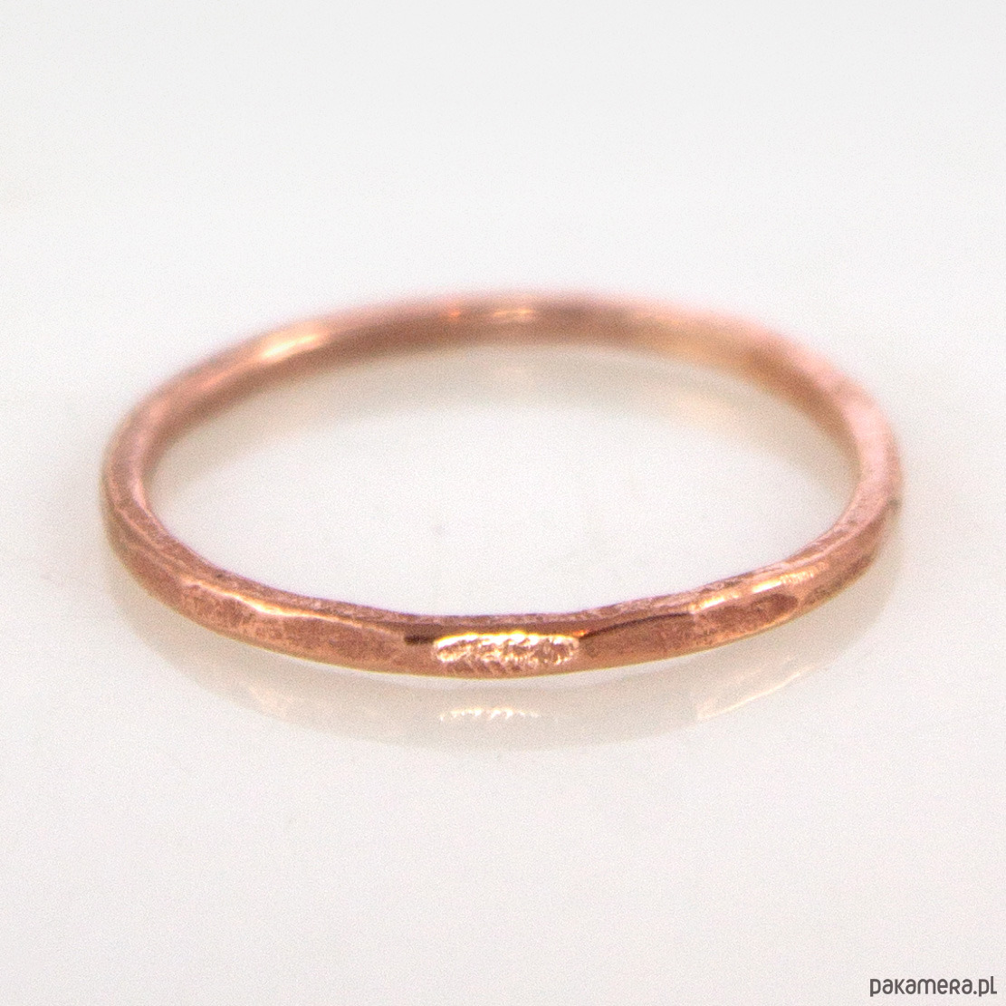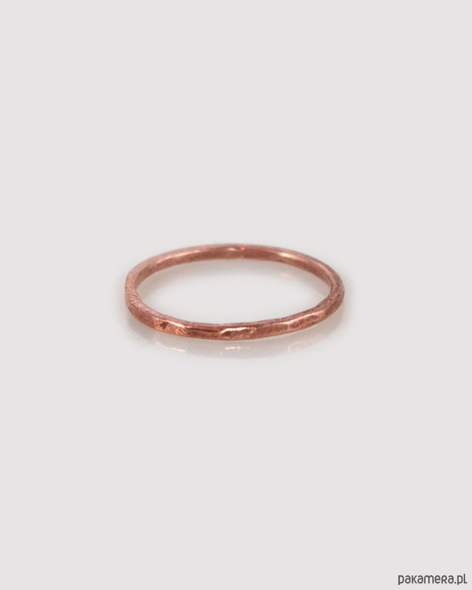Wąska miedziana obrączka o nieregularnej fakturze.
